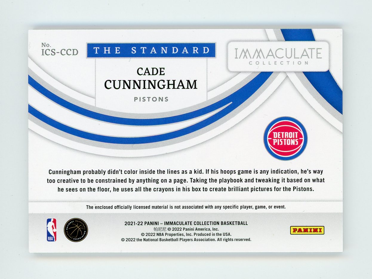 2021-22 Panini Immaculate Collection Basketball Cade Cunningham The Standard Jersey RC #'ed 38/99