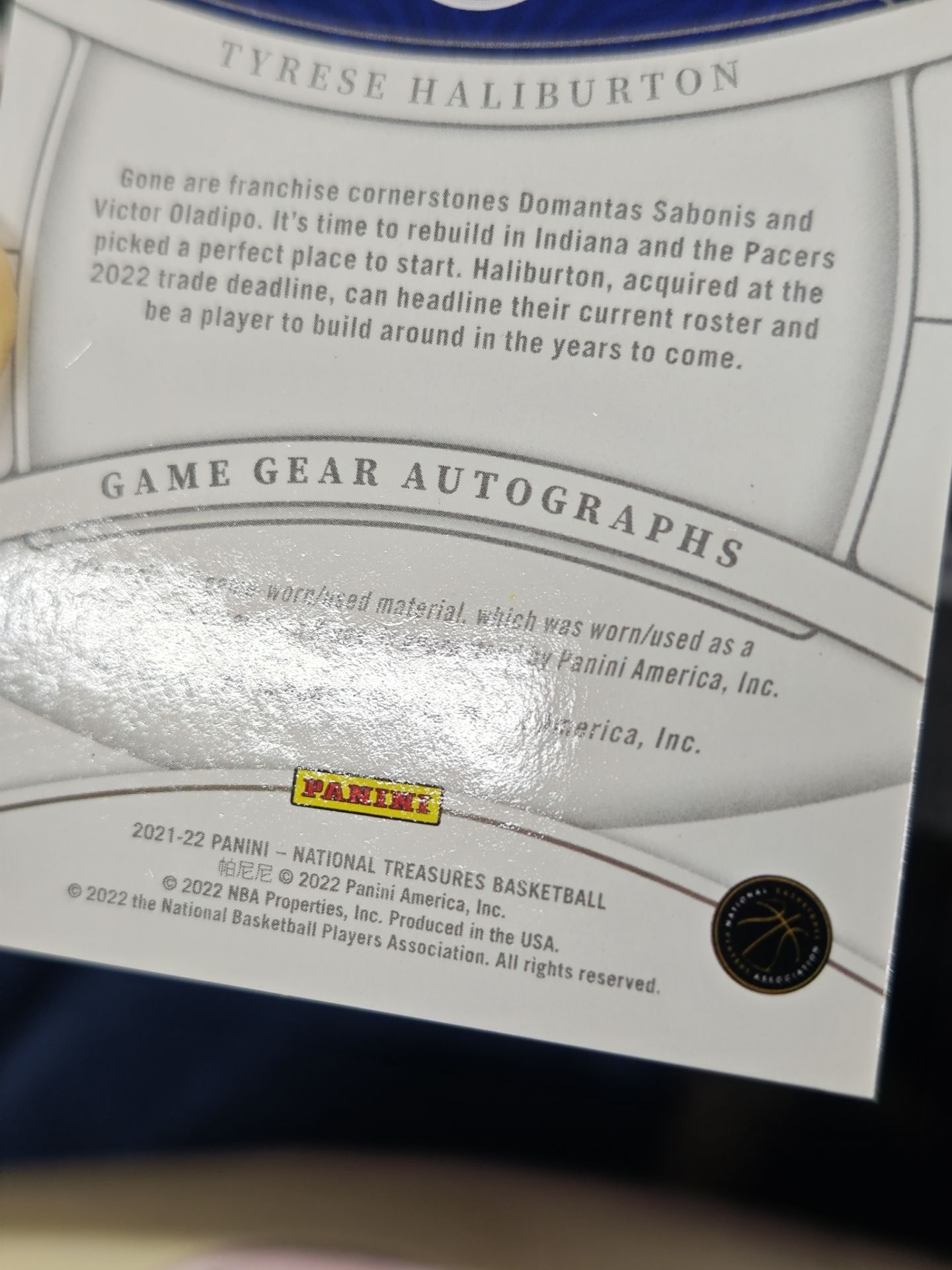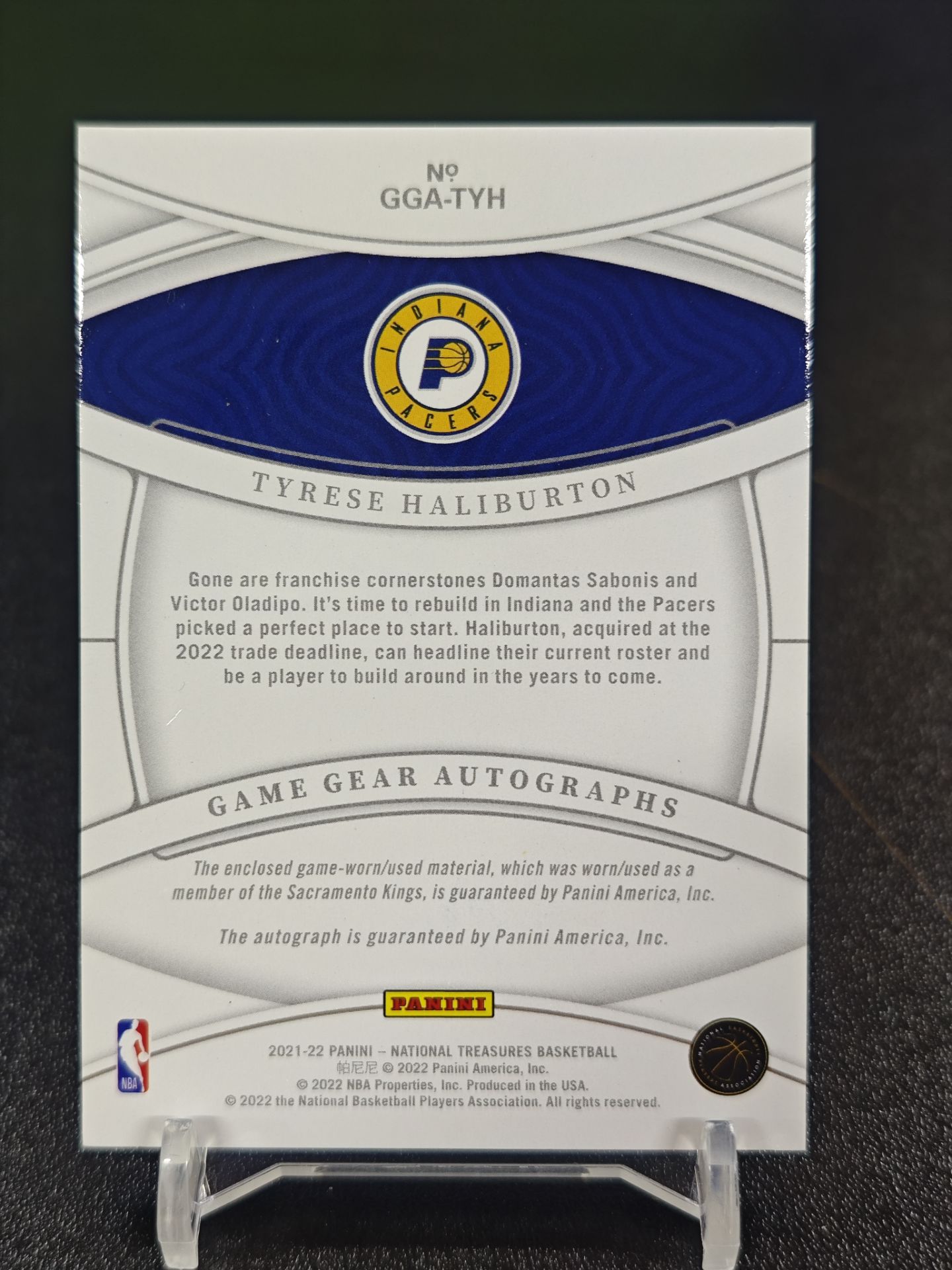 【浩行拍卖 截标预付82%】2021-22 panini National Treasures Tyrese Haliburton 国宝 步行者 哈里伯顿 哈利伯顿 签字 球衣 物料 JA 8/49编 瑕疵看图「发昭」1016D01單