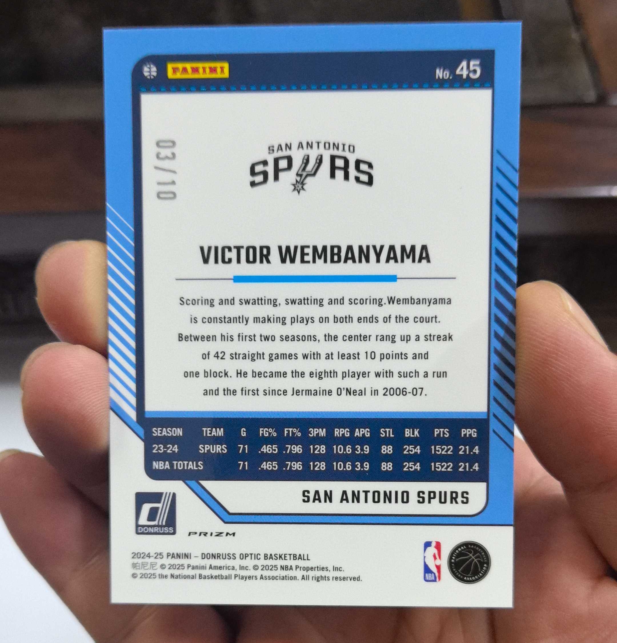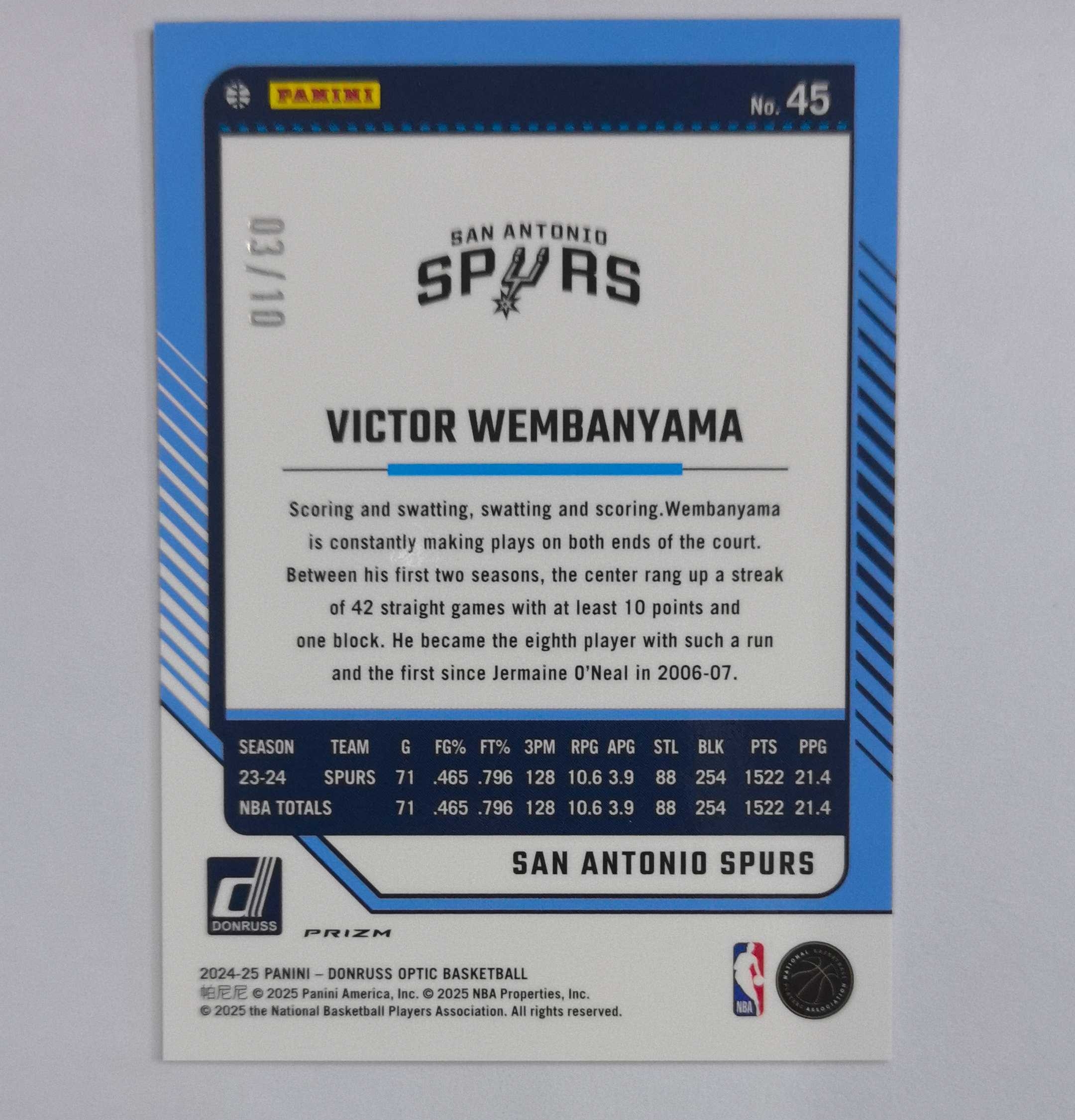 2024-25 Panini Donruss Victor Wembanyama 杜蕾斯op 马刺 文班亚马 03/10编 base 金圈圈折 卡品如图 超好卡品 四角尖尖 居中完美 评级佳品 收藏必备