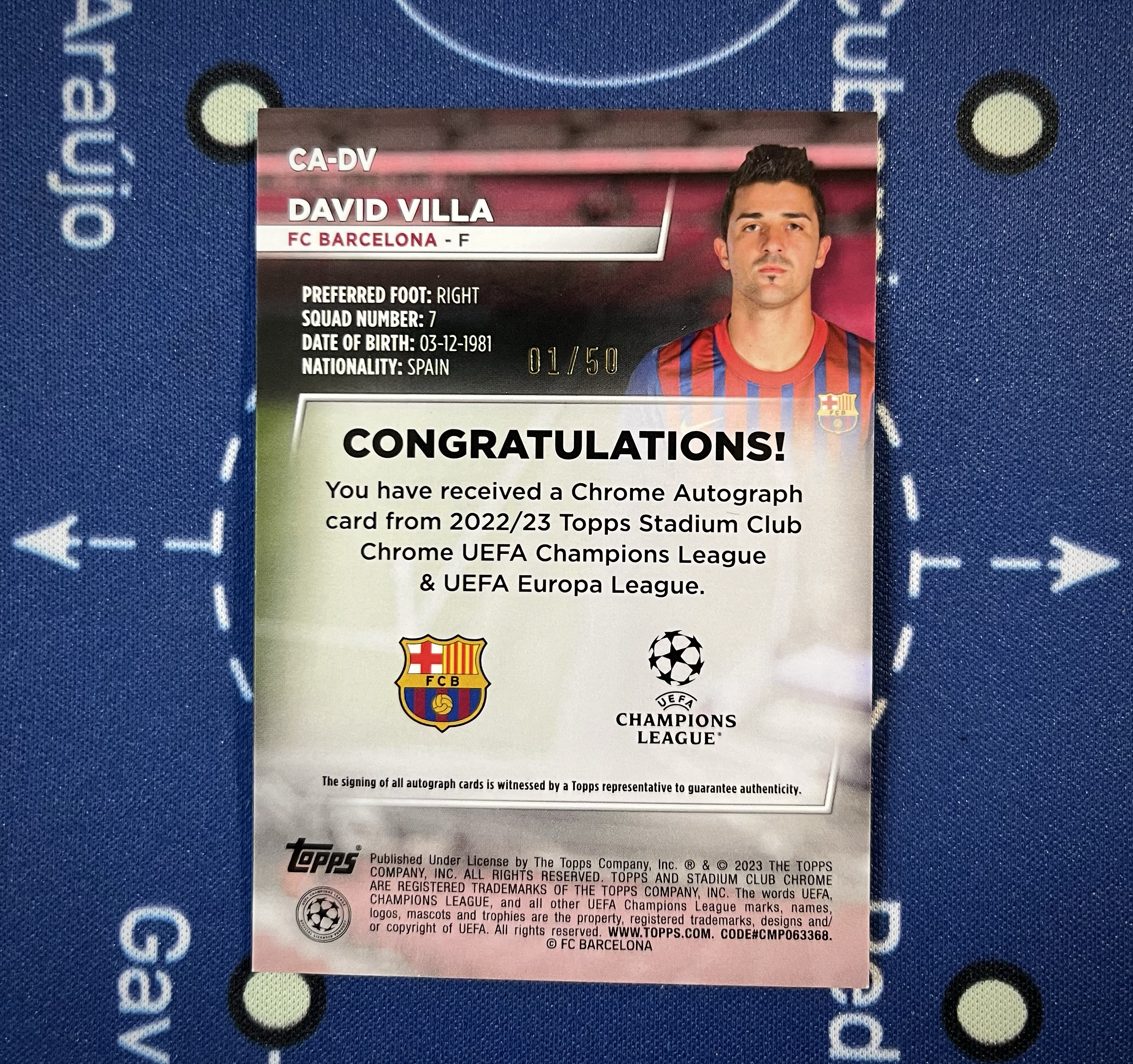 2022-23 Topps Stadium Club Chrome David Villa 比利亚 1/50编 签字 首编 金折 欧冠 竞技场 巴塞罗那 巴萨 西班牙 葫芦娃 梦三【汲泽拍卖-澤】