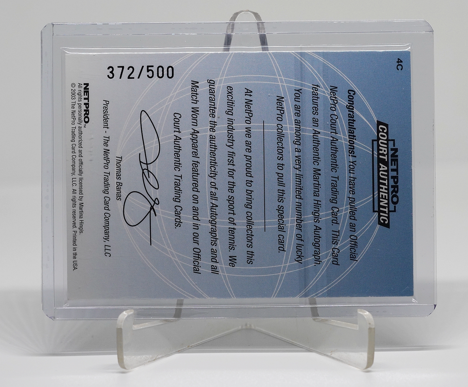 2003 Netpro Court Authentic 玛蒂娜 辛吉斯 网球卡超经典系列 瑞士公主 玛蒂娜 辛吉斯 新秀签字卡 500编 ( 372 / 500 ) 卡签