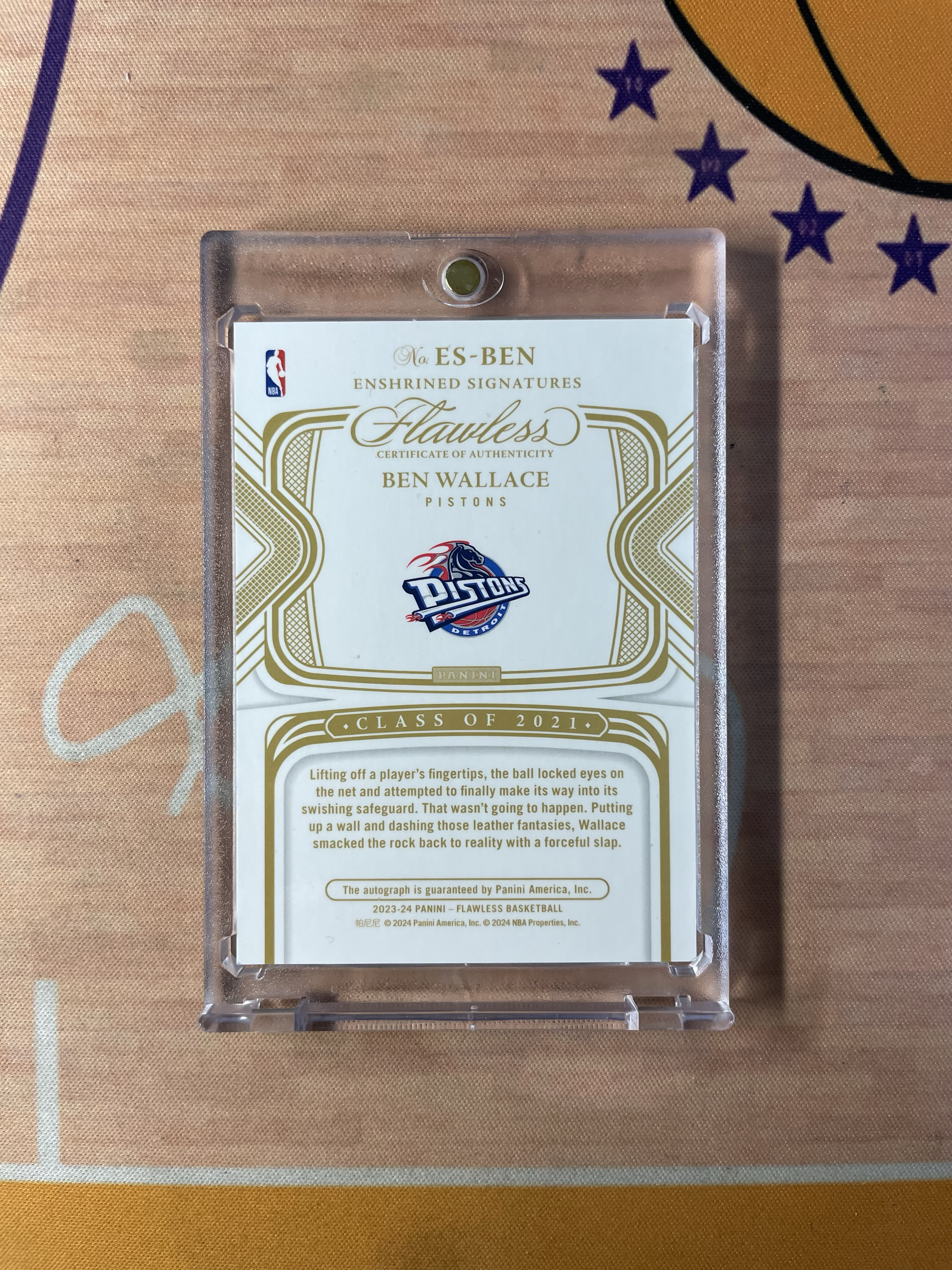 2023-24 Panini Flawless Ben Wallace 活塞 本 华莱士 手提 8/8编 尾编 卡签 签字 大本 紫平行 低编 enshrined 神圣签