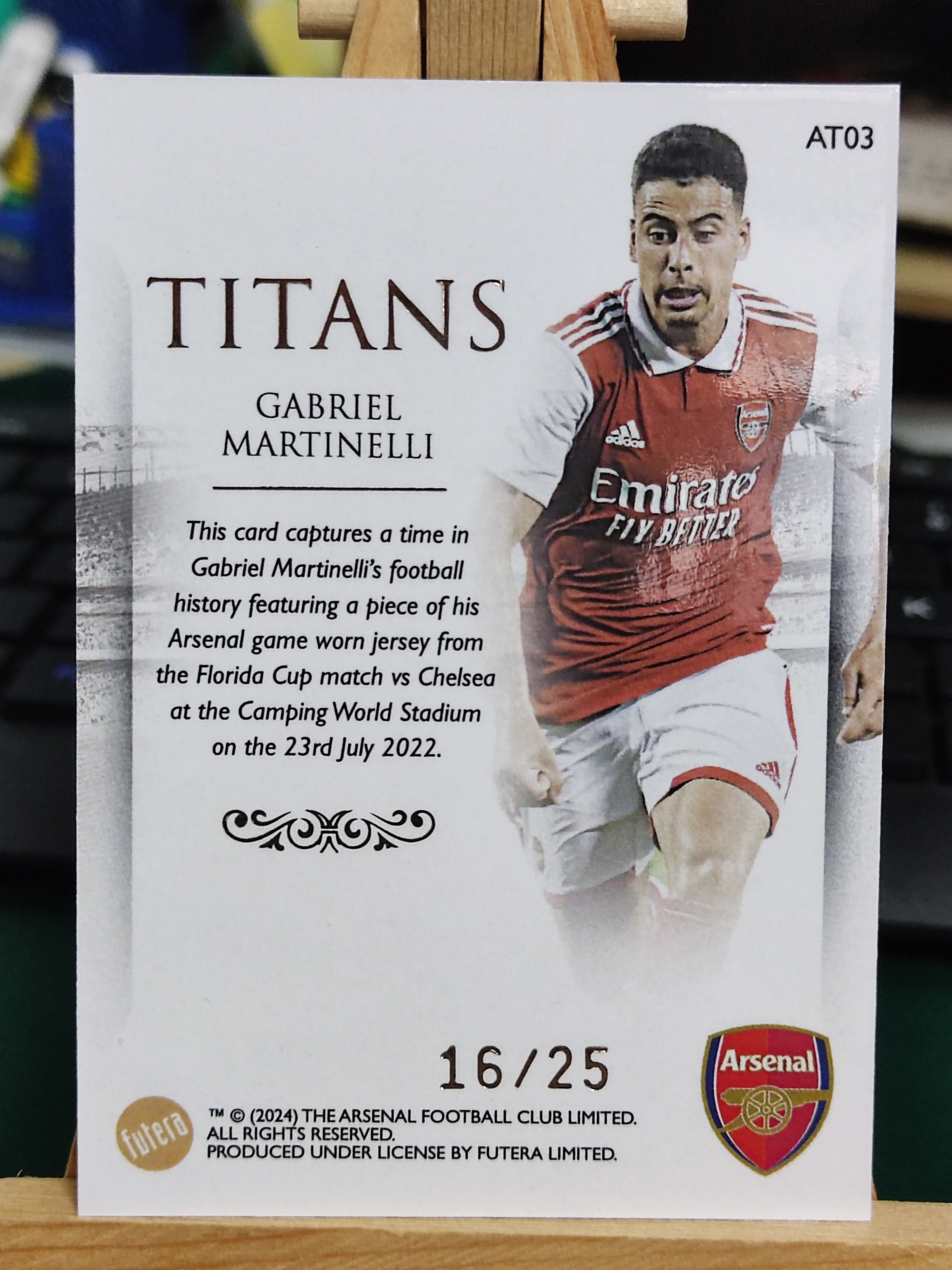 2024 Futera 阿森纳 队盒 Gabriel Martinelli 福特拉 加布里埃尔 马丁内利 巴西 TiTans 小窗 物料切割 落场球衣 25编