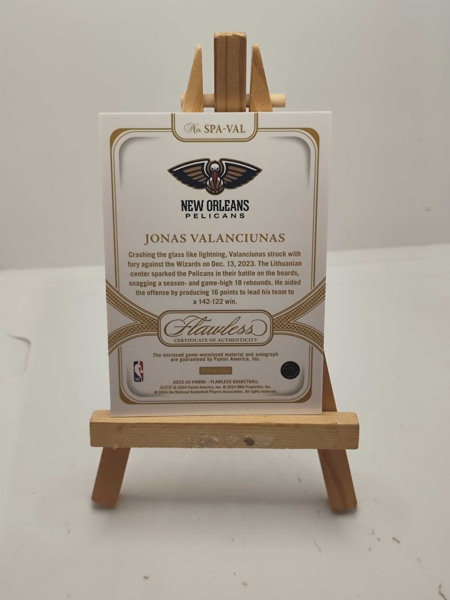 2023-24 Panini Flawless Jonas Valanciunas 约纳斯 瓦兰丘纳斯 鹈鹕 手提 球衣 物料 patch 签字 卡签 25编 卡品如图