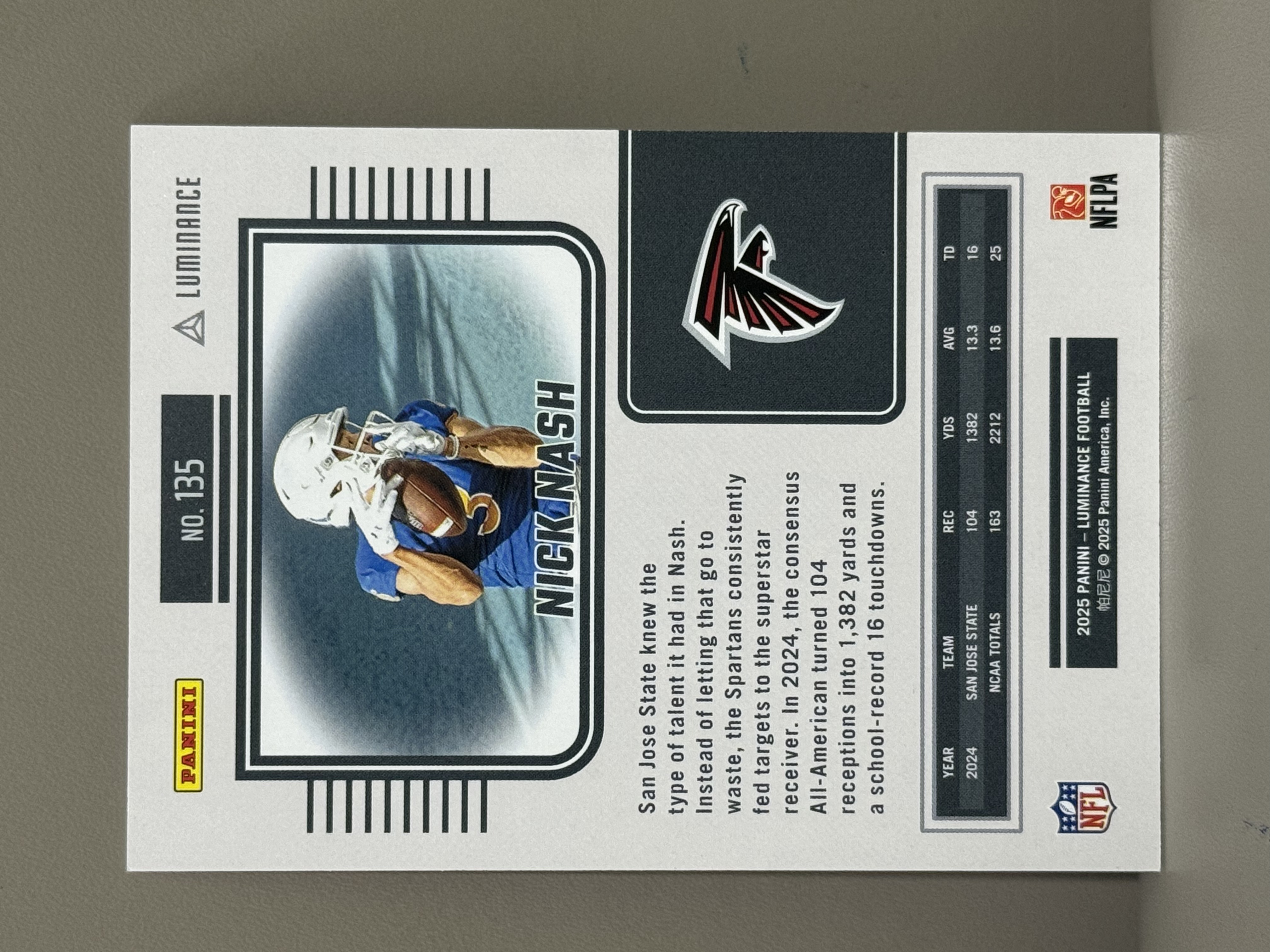 2025 Panini Luminance Nick Nash RC 橄榄球 小聚光灯 尼克 纳什 亚特兰大猎鹰 新秀外接手 101/150编 折射 卡品如图 YY