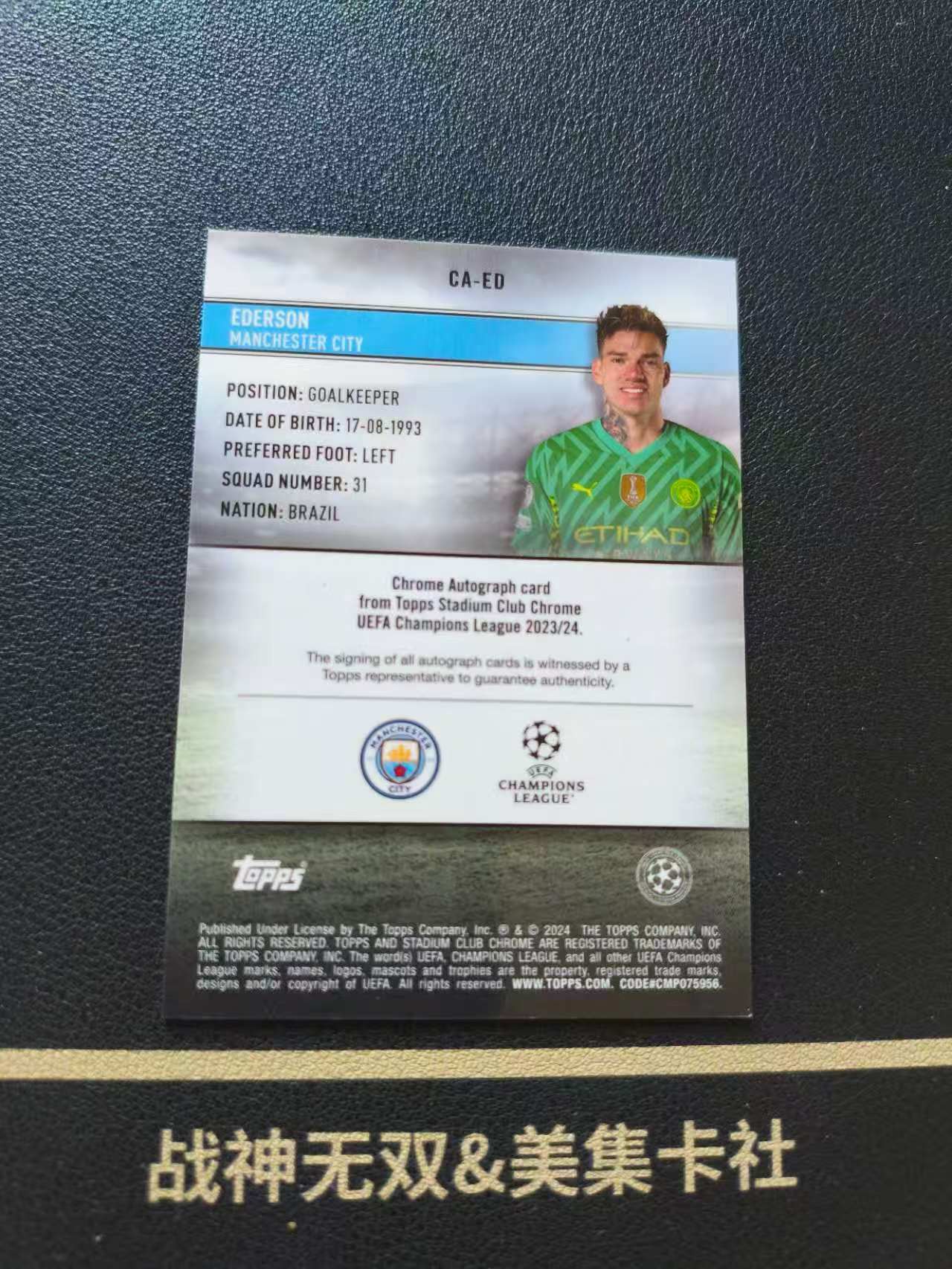 2023-24 TOPPS STADIUM CHROME EDERSON 埃德森 埃德松 签字 绿折 99编 曼城 费内巴切 巴西 英超 竞技场 签字 战神无双拍卡 (蚂蚁)