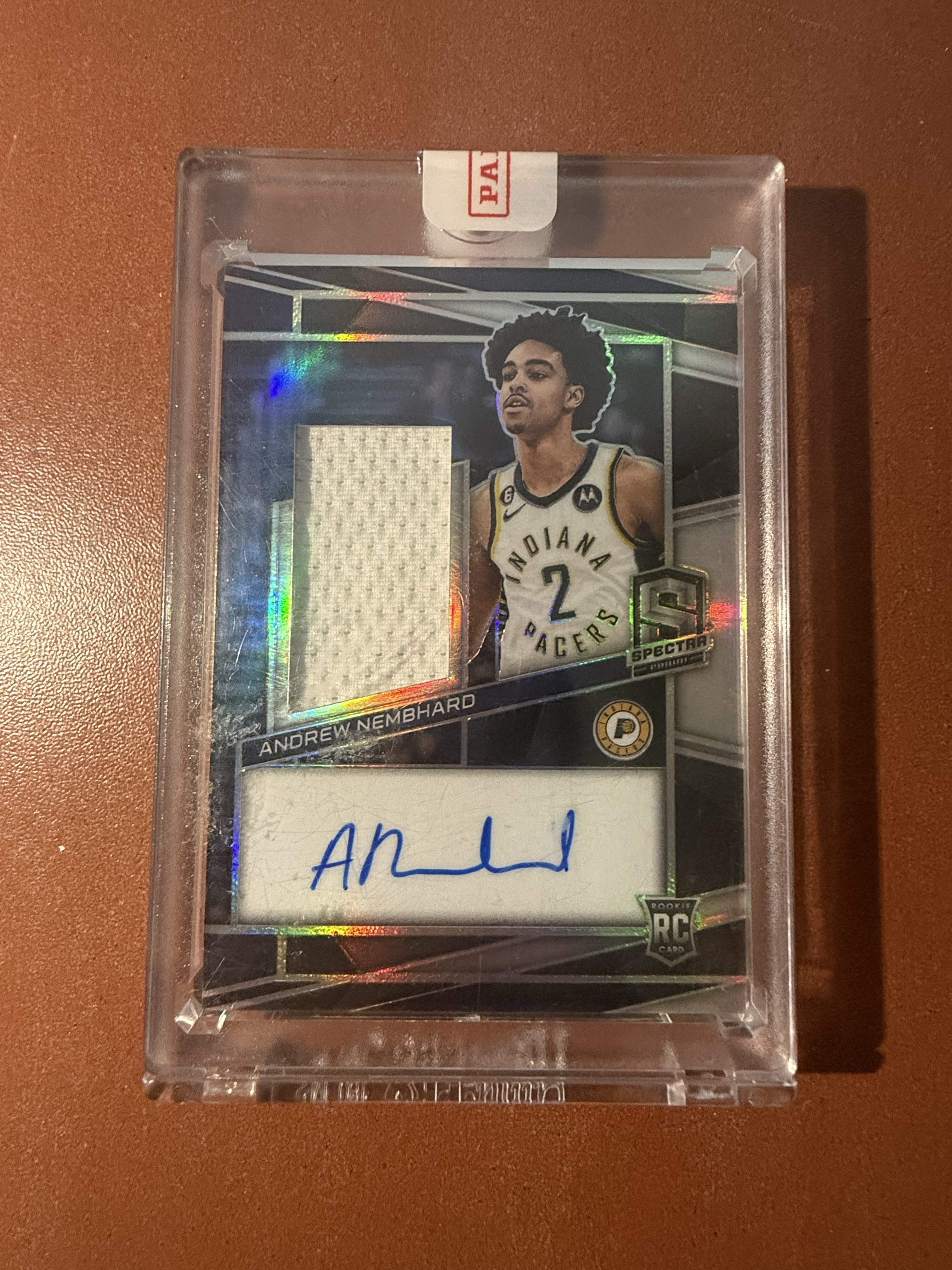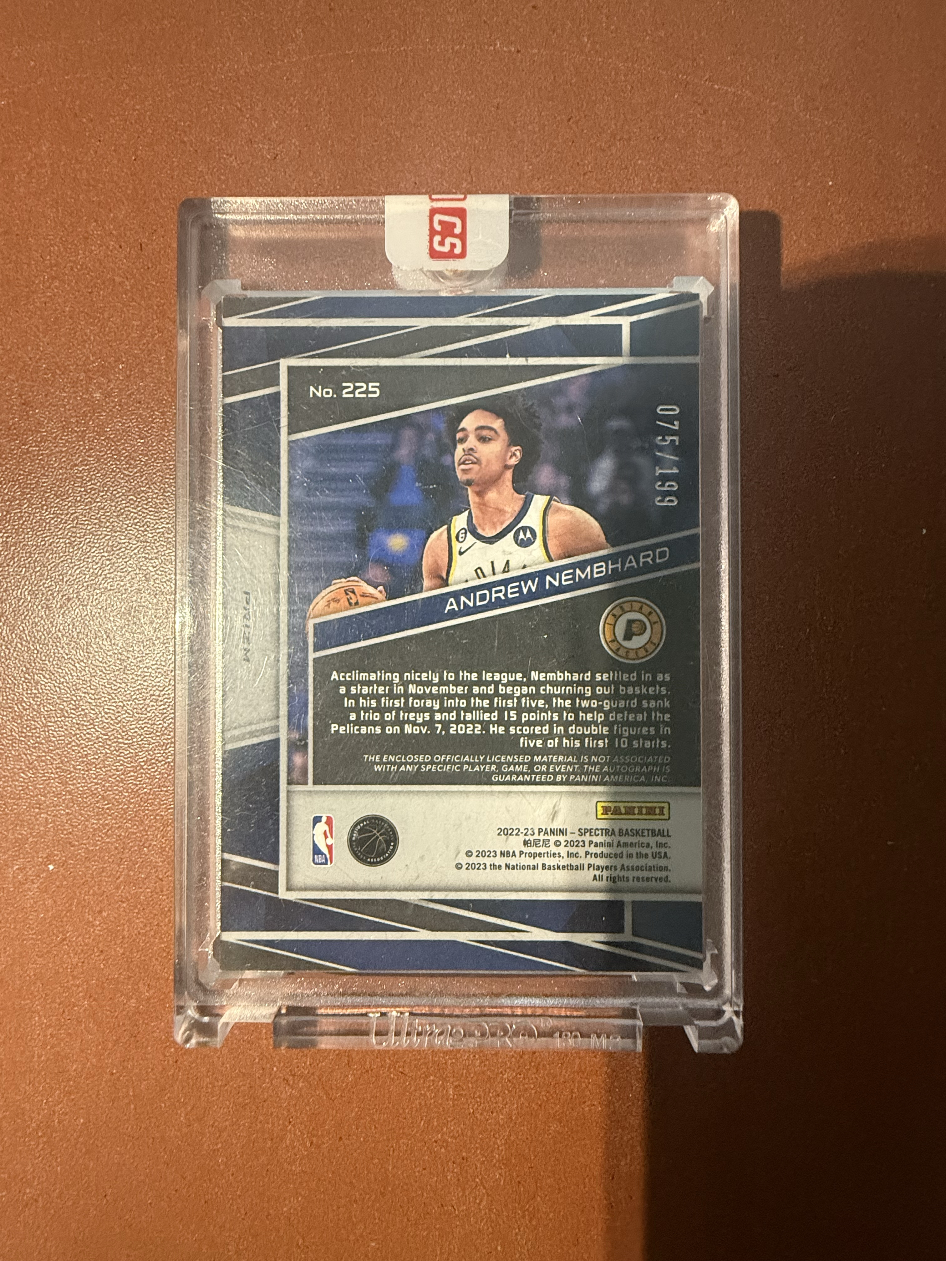 2022-23 Panini Spectra Andrew Nembhard RC 步行者 新秀RC 内姆布哈德 RJA 签字 卡签 球衣物料 75/199编 光谱折射