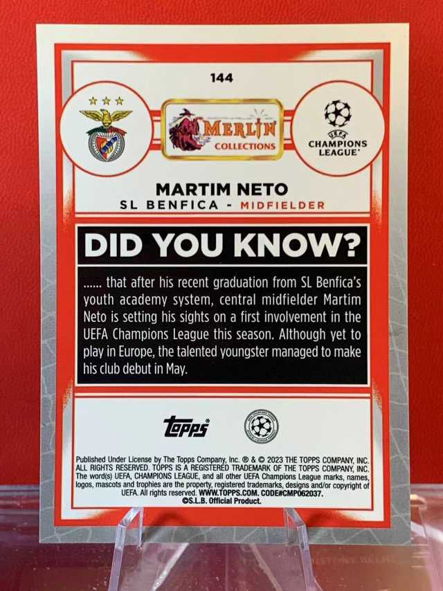 (老末代拍)E13 2022-23 Topps Merlin Martim Neto 欧冠 梅林 内托 本菲卡 新秀 RC  Hyper折 顺丰寄付 不保卡品 免费代拍