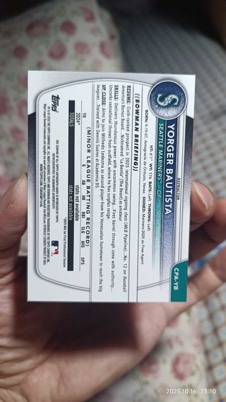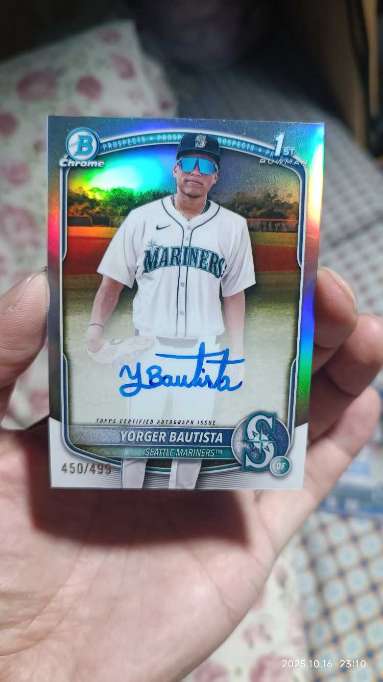 2025 bowman Chrome 棒球 新秀1st Yorger Bautista 保蒂斯塔 499编 银折 签字 西雅图水手 农场大物 系列搏点 农场排名11 投资收藏必备 (yesavage)