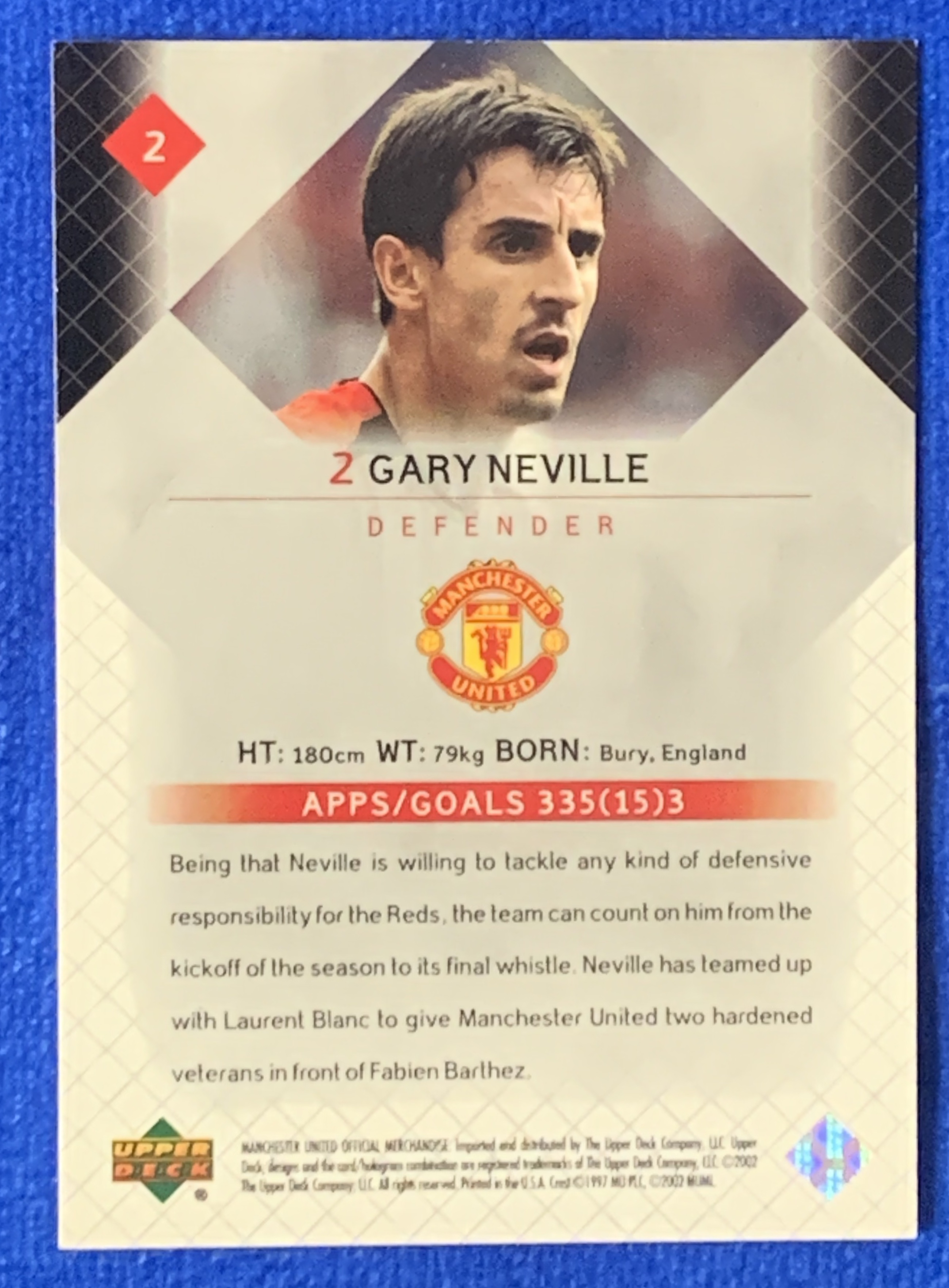 2002 Upper Deck Manchester United Gary Neville 亚德 曼联 队长 加里内维尔 92班 三冠王 英格兰England 经典老卡 不保卡品 ebay有价