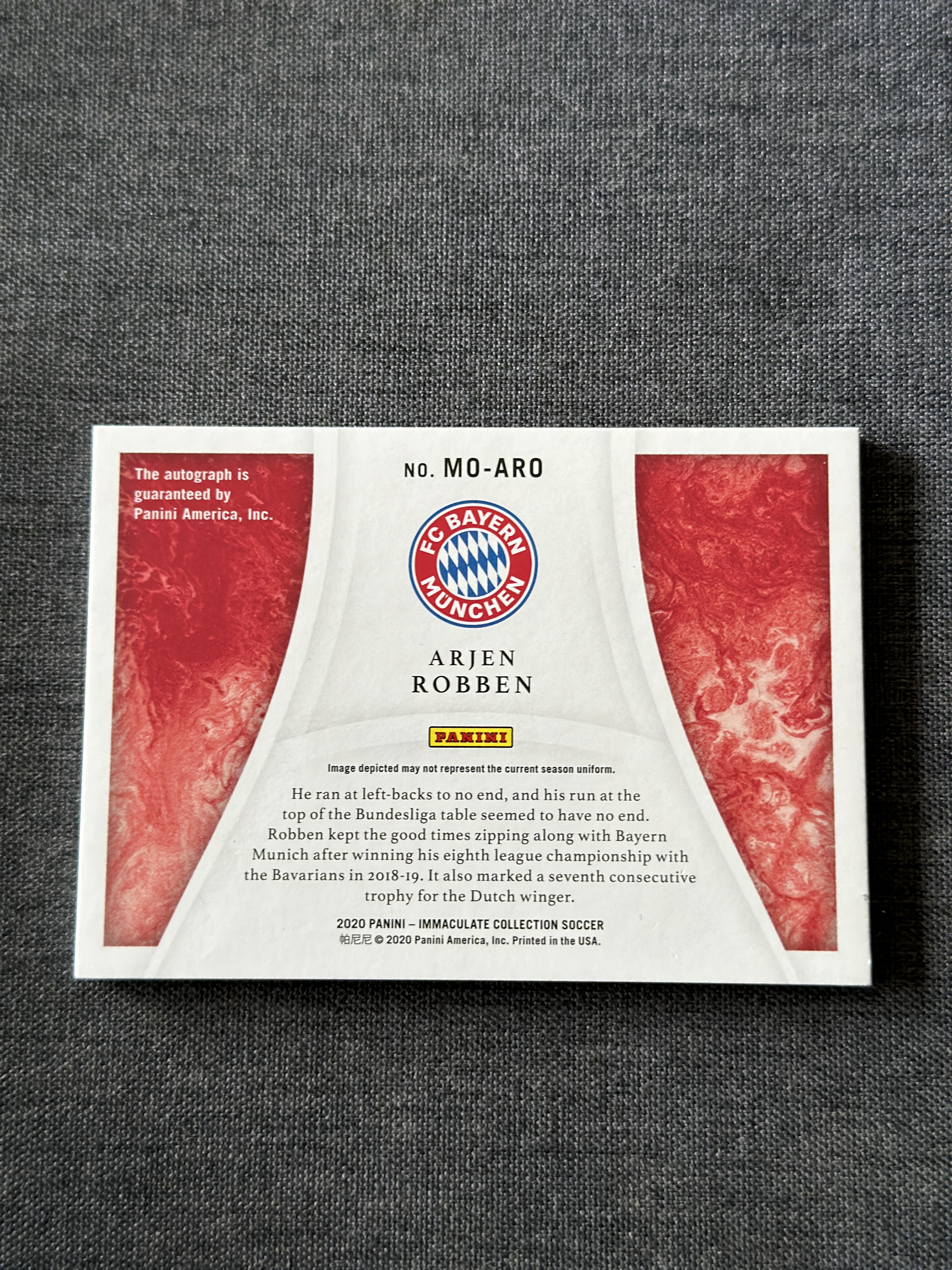 2020 Panini Immaculate Arjen Robben 罗本 签字 19/25编 时刻签 单一平行 镜面签 德甲八冠王 拜仁慕尼黑 皇马 切尔西 荷兰 小飞侠 罗老汉【FR】