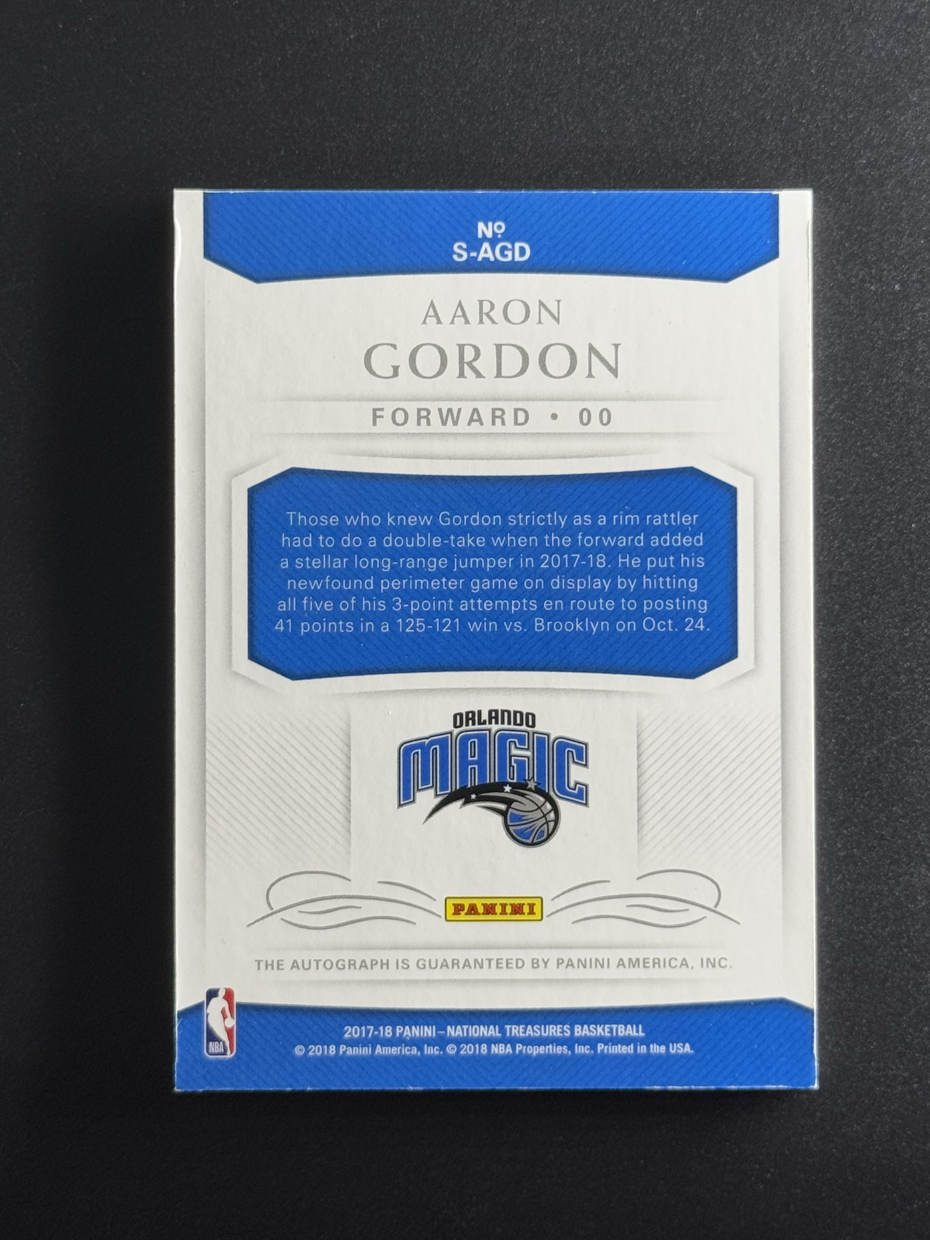 2017-18 Panini National Treasures Aaron Gordon 【小花猪代卖】阿隆 戈登 魔术 国宝 99编 签字 卡签(星