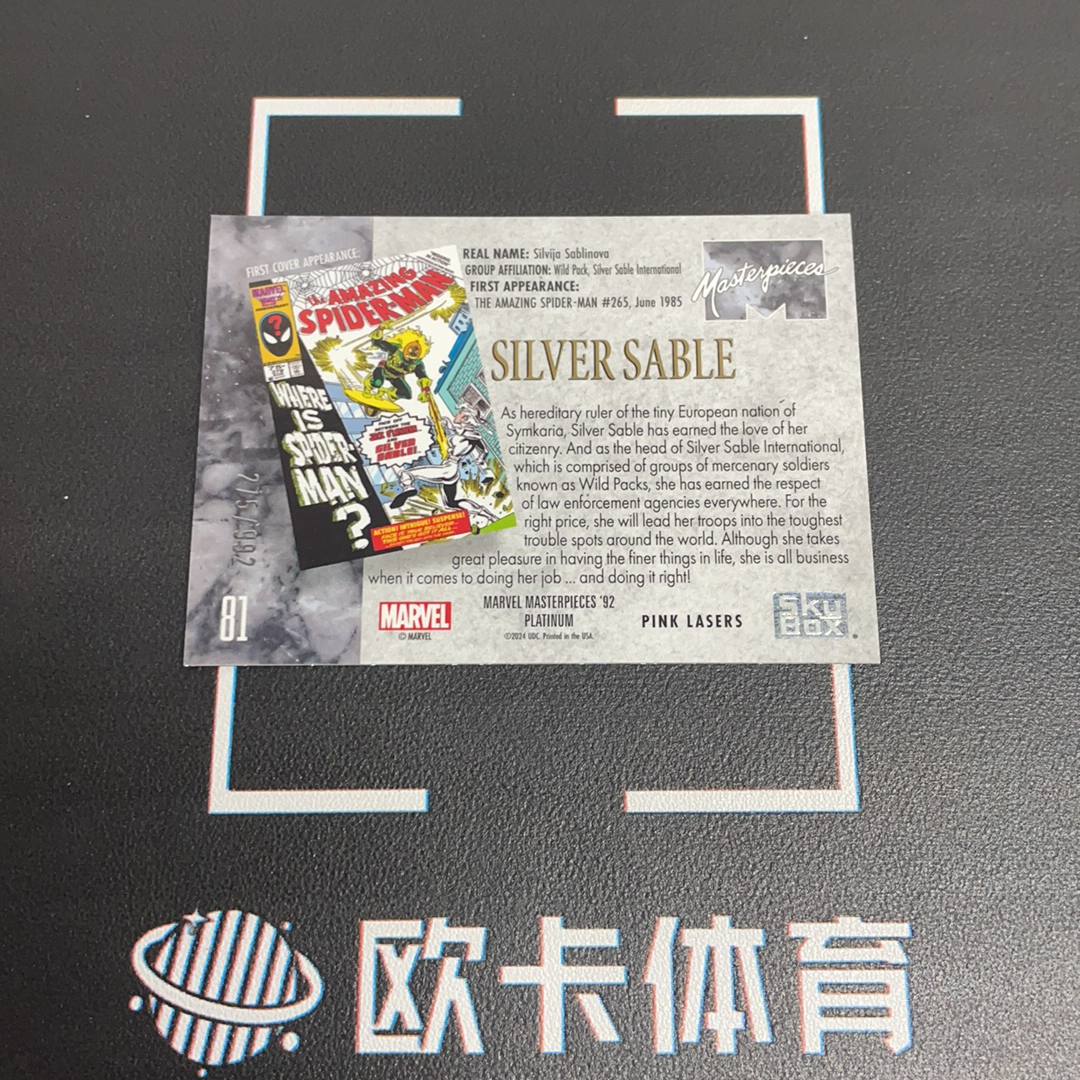 2024 SkyBox Marvel (MCU) 漫威 Masterpieces '92 大师白金复刻 【大满拆】 (赤)275/992编 粉镭射折射 银貂 Silver Sable #81 卡品如图