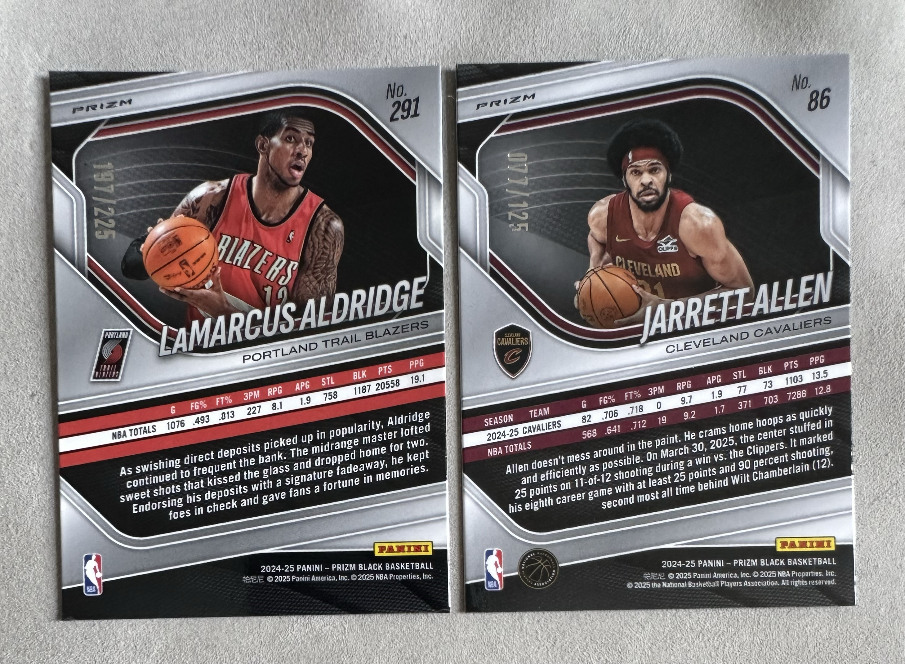 2025 Panini Prizm Black LaMarcus Aldridge 阿尔德里奇 225编 球皮折射 阿伦 125编 蓝碎冰折射 2张打包 不保卡品 卡量稀少 凑套必备(L哥45)