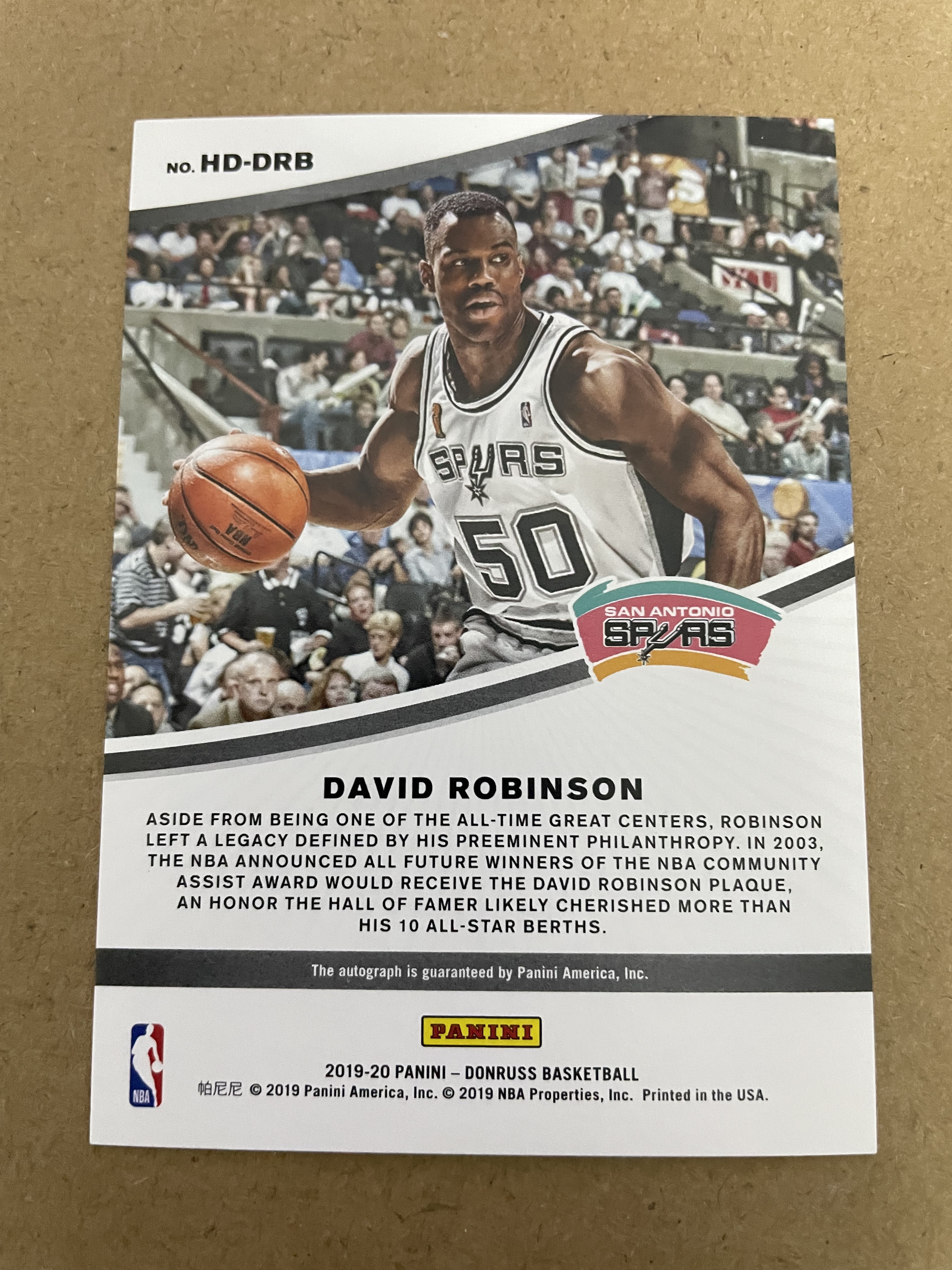 2019-20 Panini Donruss David Robinson 杜蕾斯 马刺队 海军上将 大卫罗宾逊 格子折 签字 34/99编
