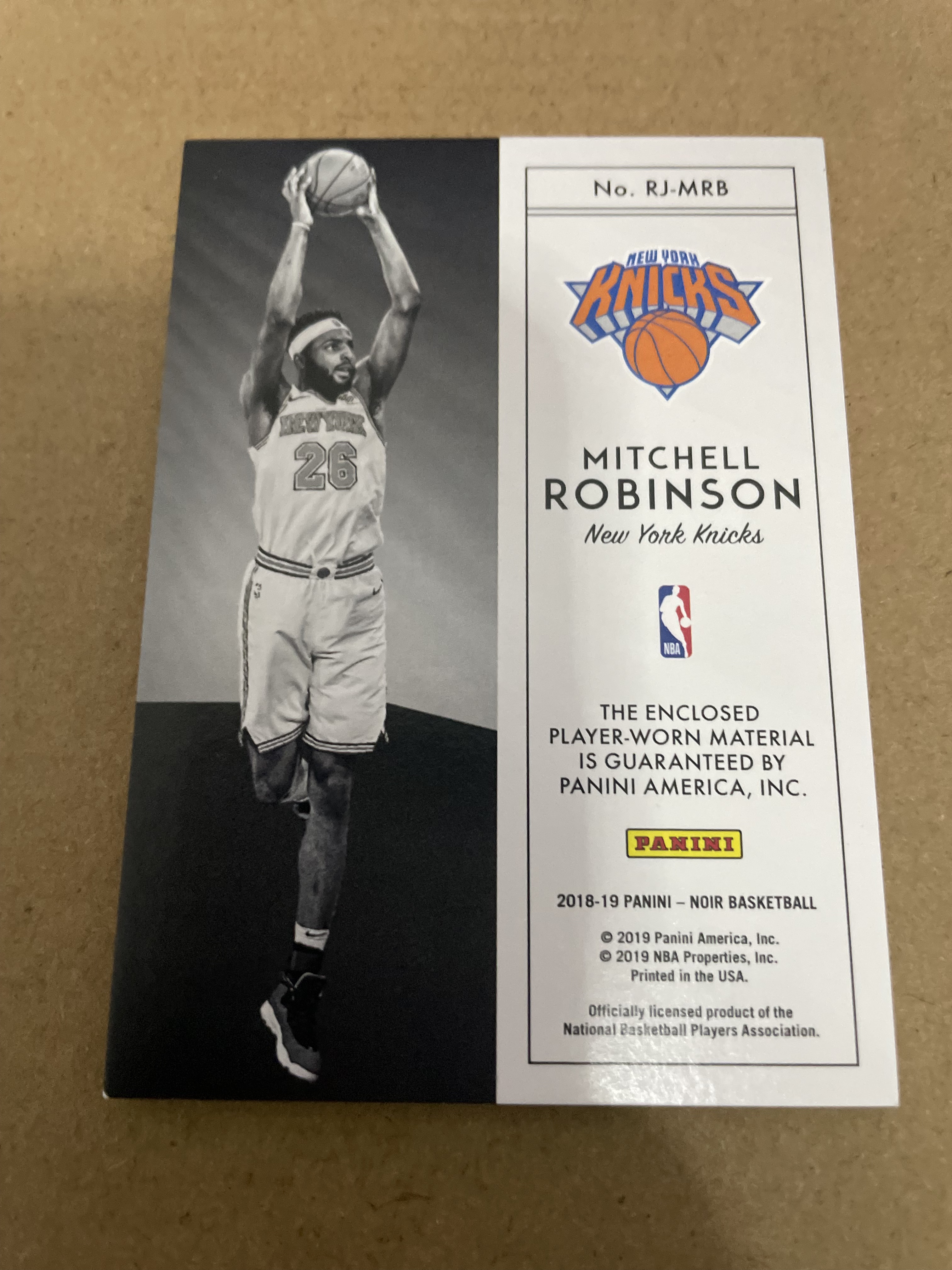 2018-19 Panini Noir Mitchell Robinson RC 尼克斯队 新秀 米切尔罗宾逊 米罗 JUMBO 大窗球衣切割 实物物料 25/99编