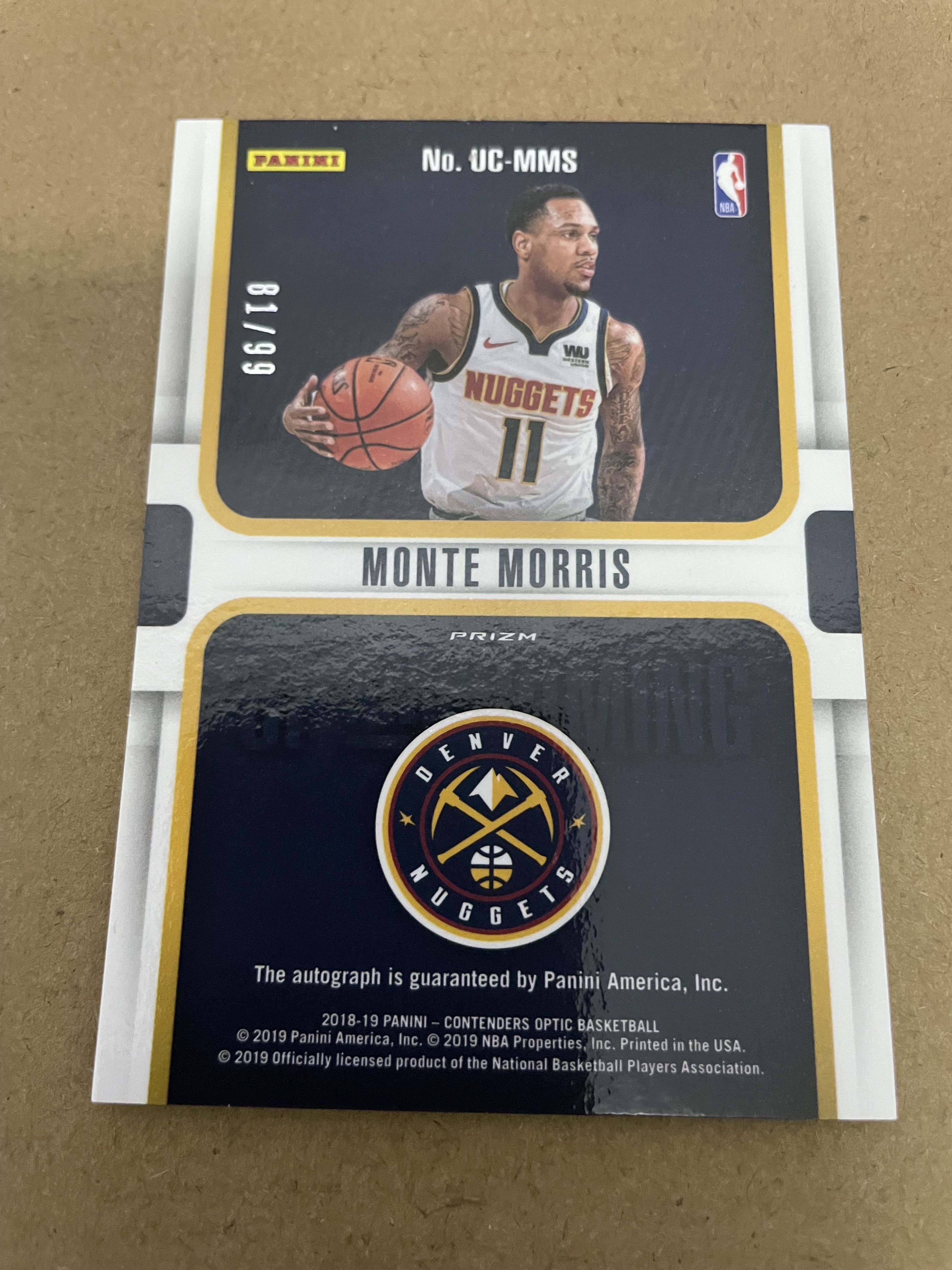 2018-19 Panini Contenders Optic Monte Morris RC 球票 op 掘金队 蒙特 莫里斯 银折 签字 猪脚饭