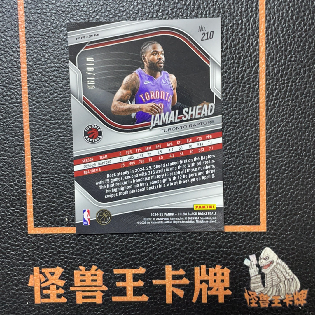 (怪兽拍卖) GSW-A98 2024-25 Panini prizm black jamal shead 猛龙 贾马尔 谢德 新秀RC 199编 蓝折 卡品如图