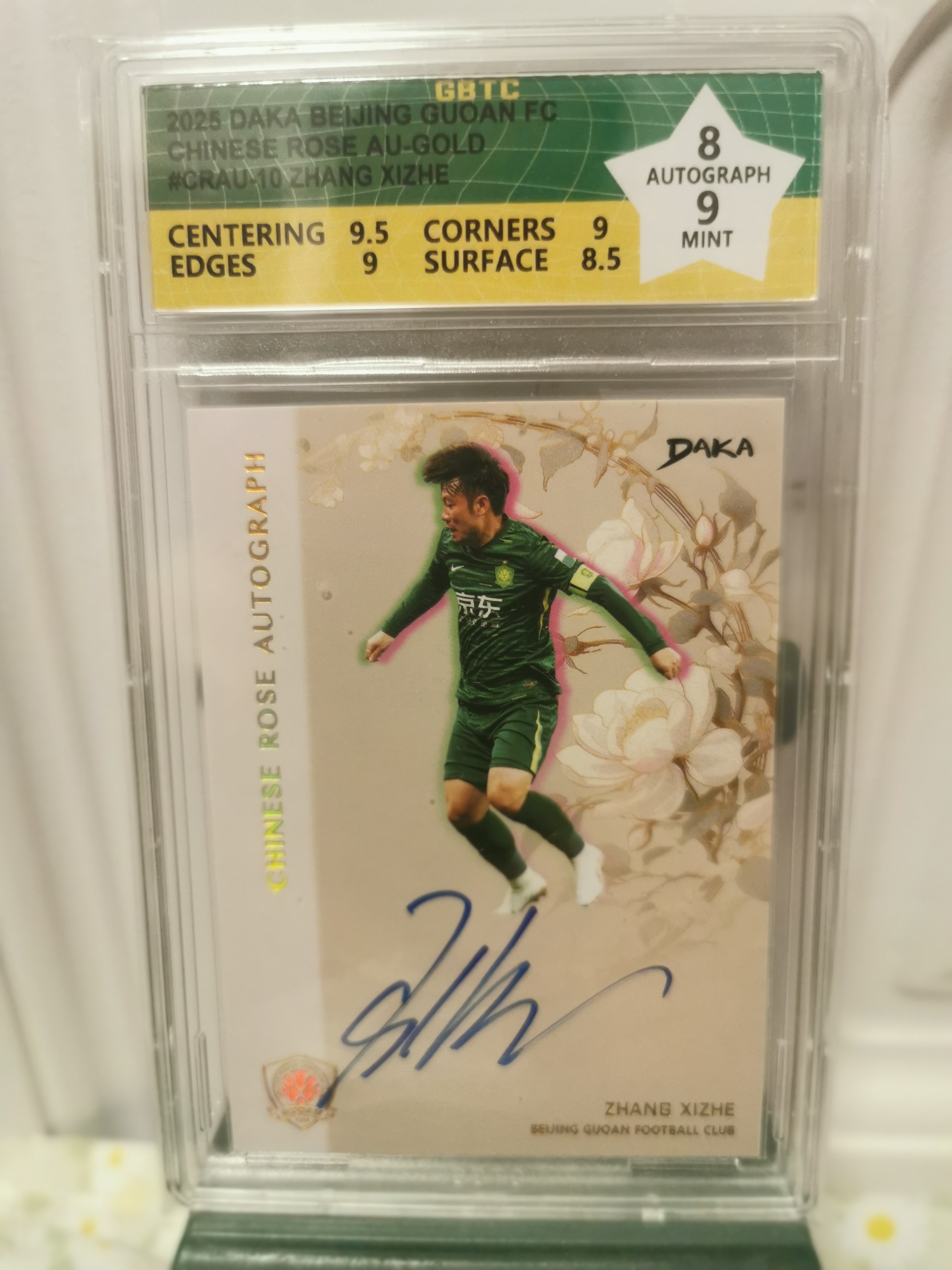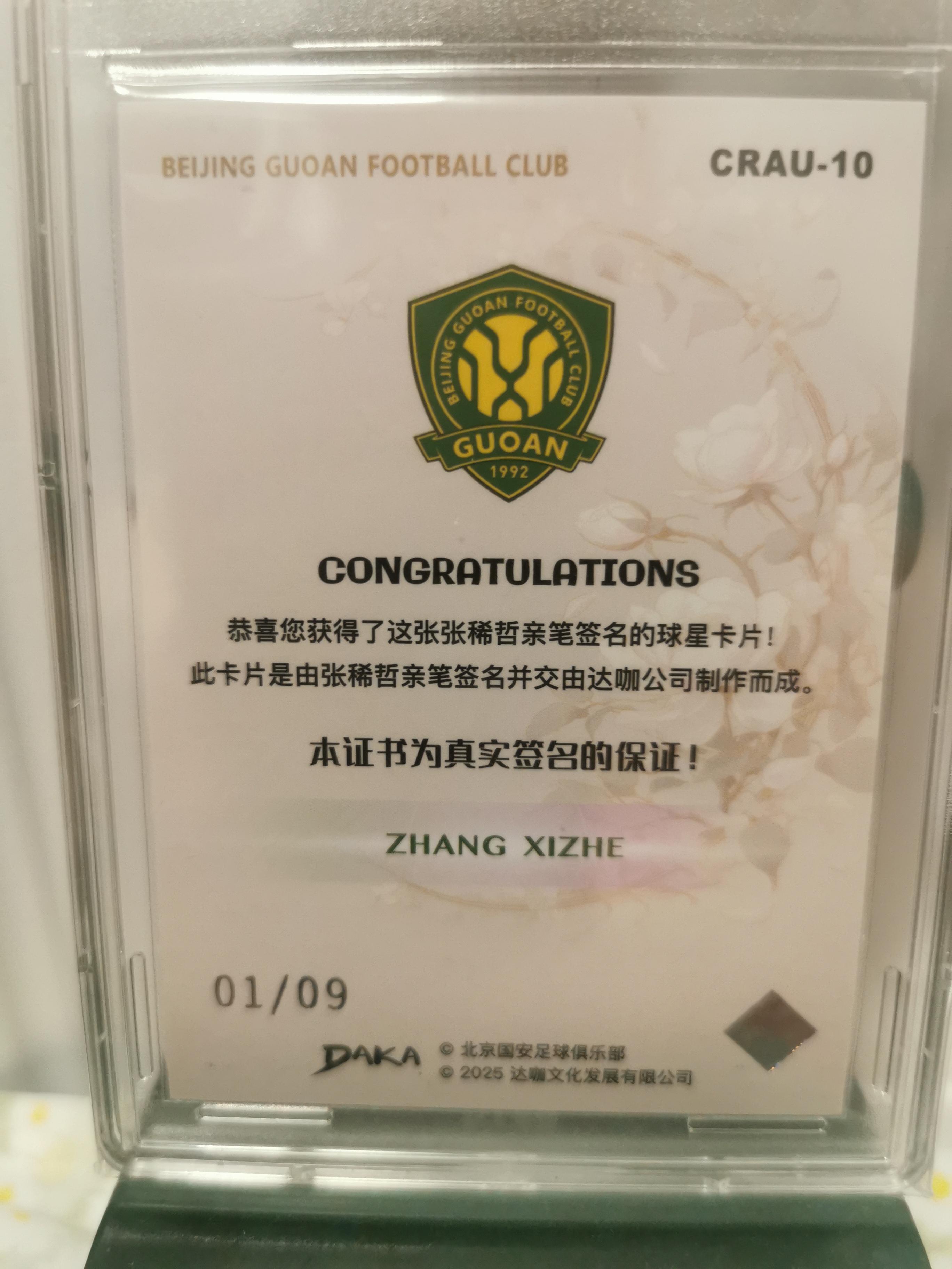 2025 DAKA 北京中赫国安足球俱乐部 Zhang Xizhe 北京国安队盒 张稀哲 中国玫瑰签名卡 金折 01/09编 首编 GBTC 评级 8/9分 实卡精美 收藏 凑套必备!