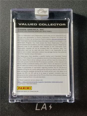 LA直通车属于LA拍卖专注于服务卡店的子品牌,因卡淘系统不支持跨号合并,所以分开发货计算邮费,卡品如图,请仔细看图,如果无图片特殊展示瑕疵均为通行品相,一般prizm optic 等系列薄卡的小划痕,国宝IMM等系列厚卡的小白边小白角,都属于通行品相。艺术家 品控勿扰。中标后请等我们合并订单再点确认付款。付款时卡淘留言说明累计或邮寄,避免纠纷只发卡淘默认地址(我们会按照留言的先后顺序处理发货,请不要反复留言以免耽误给您回复)为了方便结算和卡片的累计查找,我们只合并当天的订单。邮费-顺丰(默认陆运):北京13元,非偏远外地18元,新疆西藏等偏远只发到付!超重只发到付!1000元以上的订单,建议买家自行保价,或用顺丰到付,所有快递未经保价,运输途中的损坏和丢失请于快递联系解决。(本店不支持任何普快发货,破损及丢失率太高)介意勿拍!中标可累计,累计时间2个月,每标累计金额不能超过1000元,累计商品不支持任何售后,累计超时未联系发货的,发生损坏、丢失问题 由买家自行承担损失。累计的卡片请先付清卡款,然后站内信留言提货吗,请于截标后3天转好,截标后5天未确认收到付款,一律卡淘投诉处理。寄售代卖咨询:laauction。(此微信用于代卖业务,卡淘订单问题卡淘站内信留言,客服上班逐一回复~)