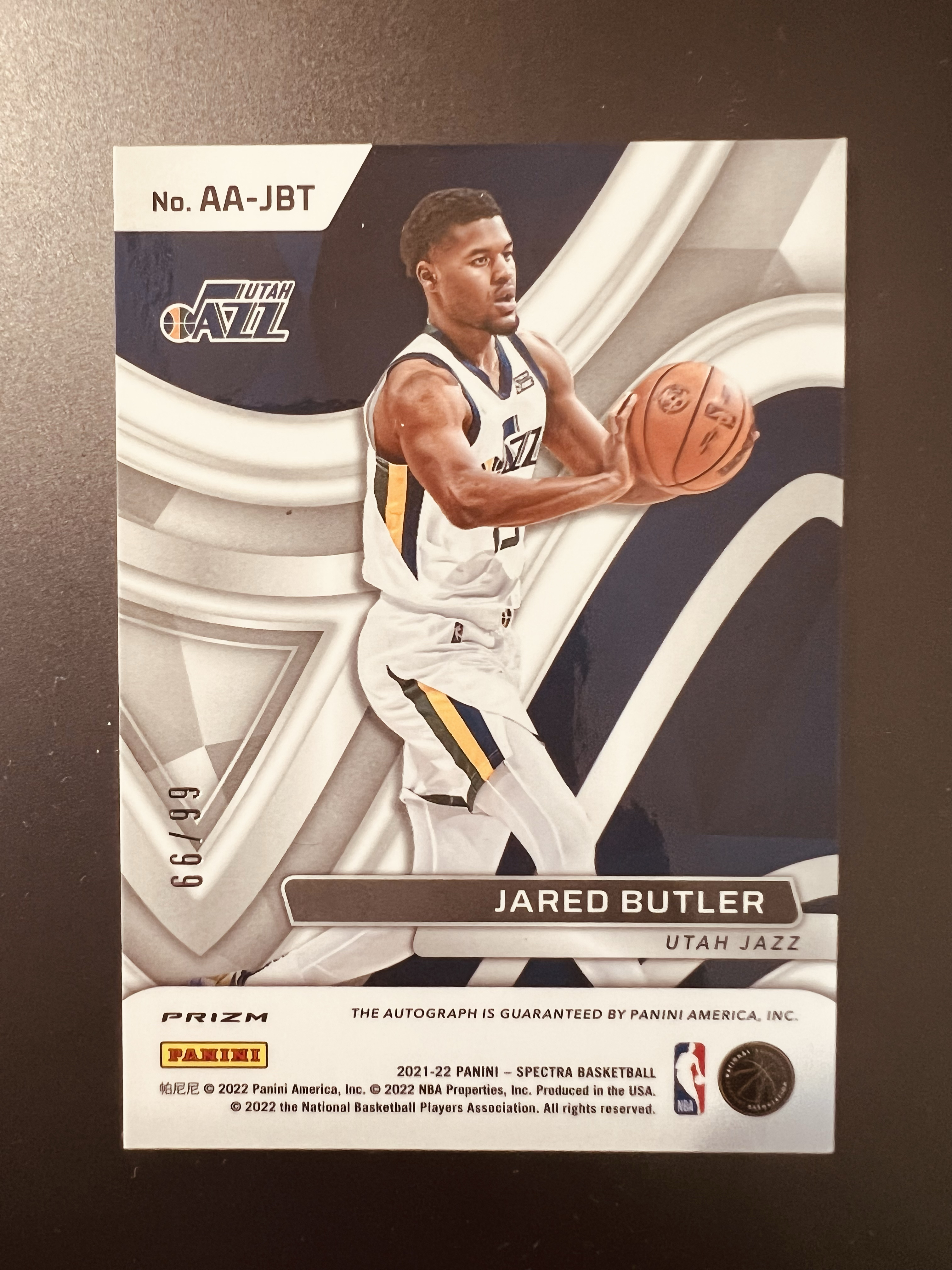2021-22 Panini Spectra Jared Butler RC 贾里德 巴特勒 爵士 新秀 光谱 66/99编 银折 签字 折射 潜力新人