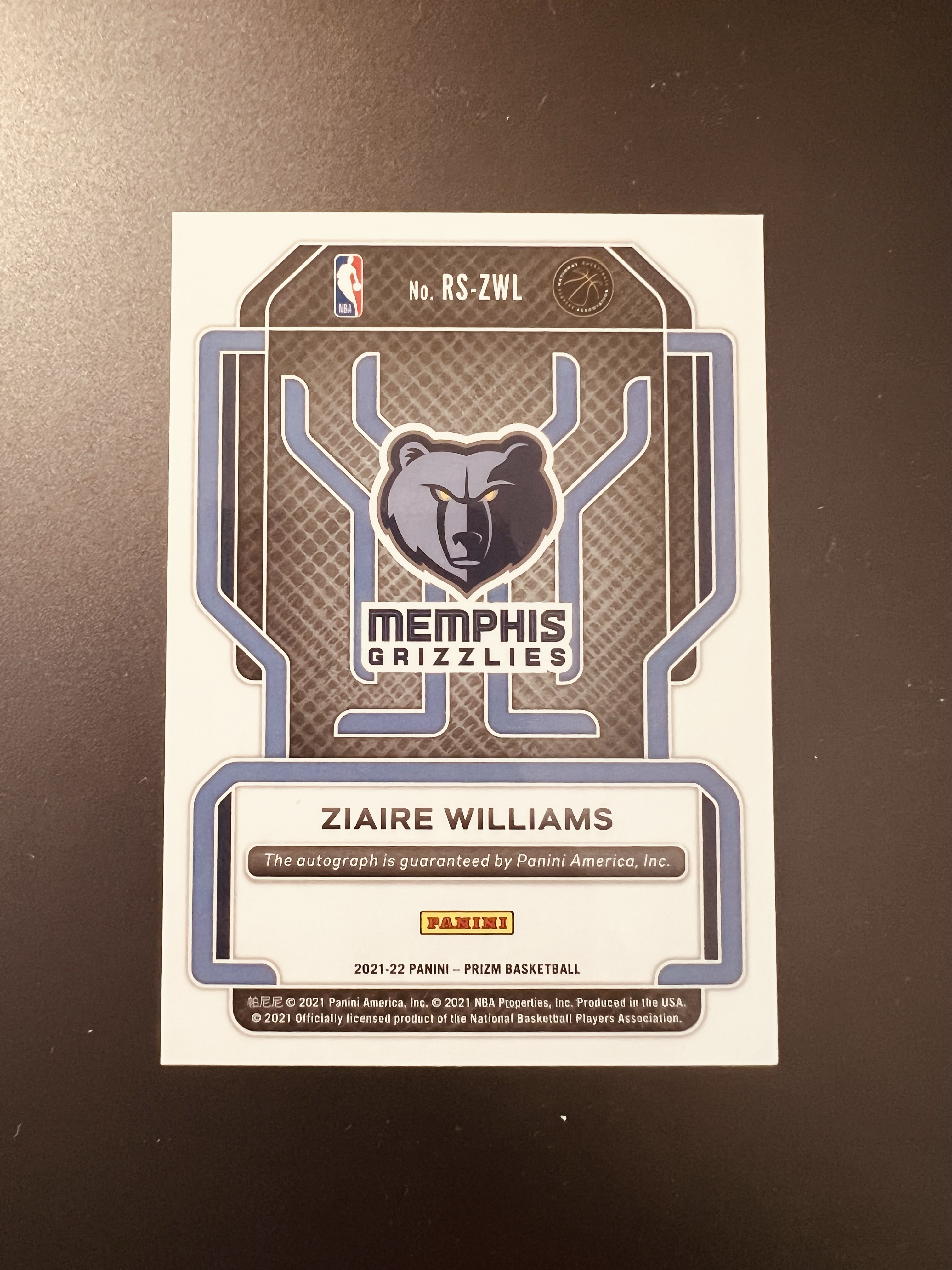2021-22 Panini Prizm Ziaire Williams RC Prizm Ziaire Williams 灰熊 新秀 扎伊尔 威廉姆斯 扎威 签字 篮网 pz