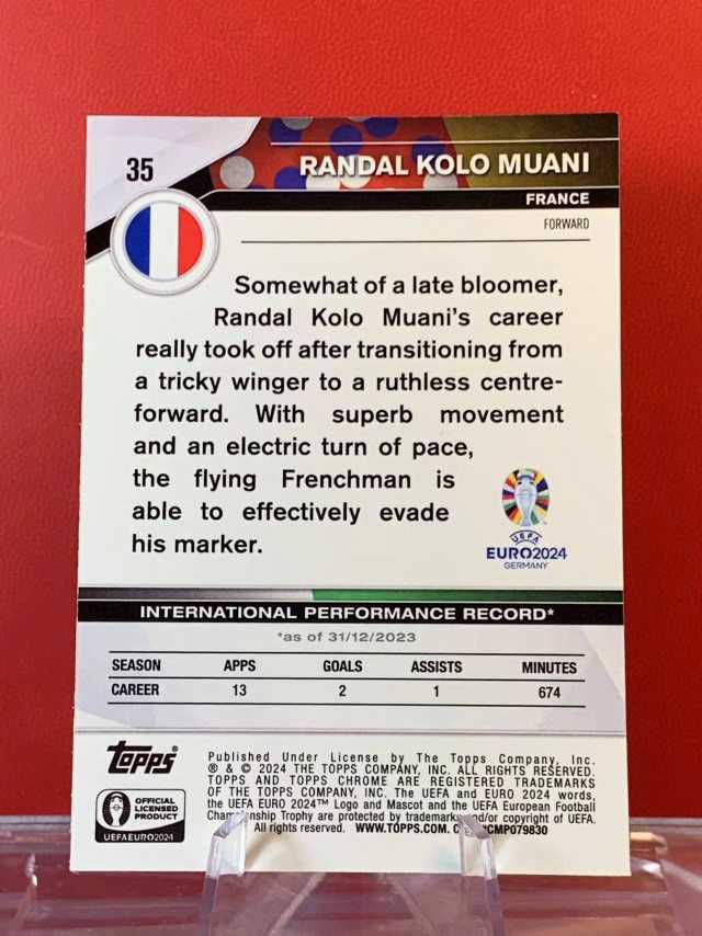 (老末代拍)E 08 2024 Topps Chrome Randal Kolo Muani 兰德尔 科洛 穆阿尼 法国 欧洲杯TC元年 蓝宝石 碎冰折 顺丰寄付 免费代拍 不保卡品