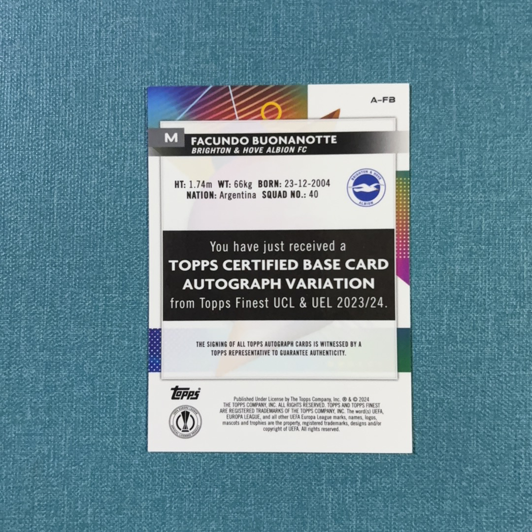2023-24 Topps Finest 欧战 Facundo Buonanotte 博纳诺特 签字 新秀 RC 银折 布莱顿 卡品如图 ZCC1
