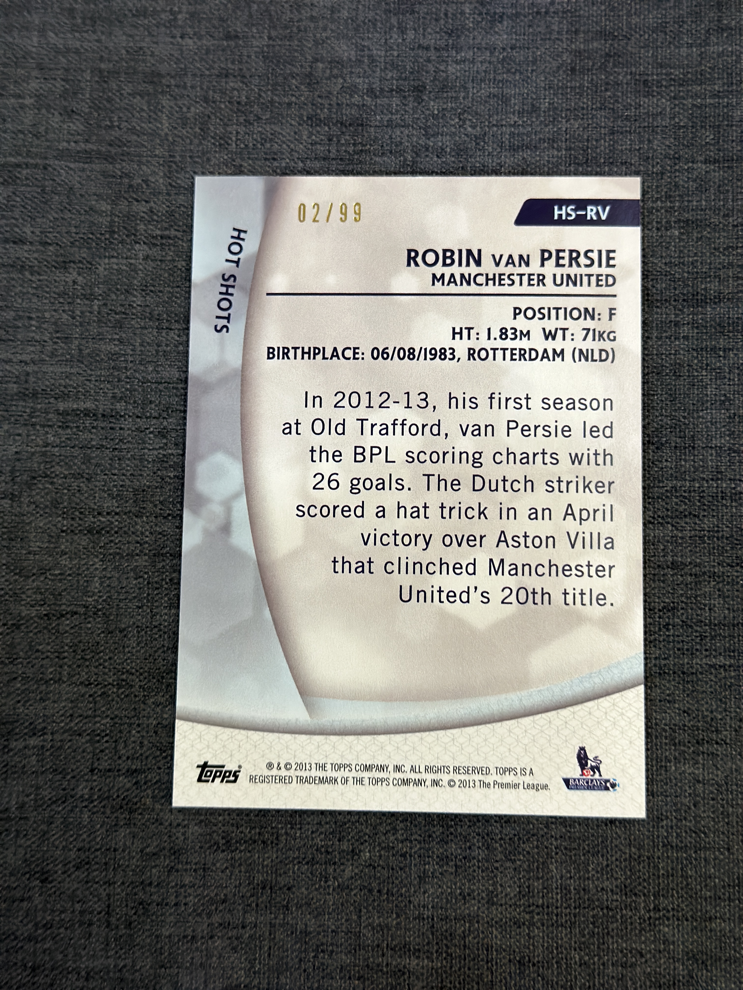 2013 Topps Barclays Robin van Persie 元年 英超 范佩西 2/99编 绿折 绿平行 热门球星特卡 曼联 阿森纳 荷兰 范大将军【成欧】