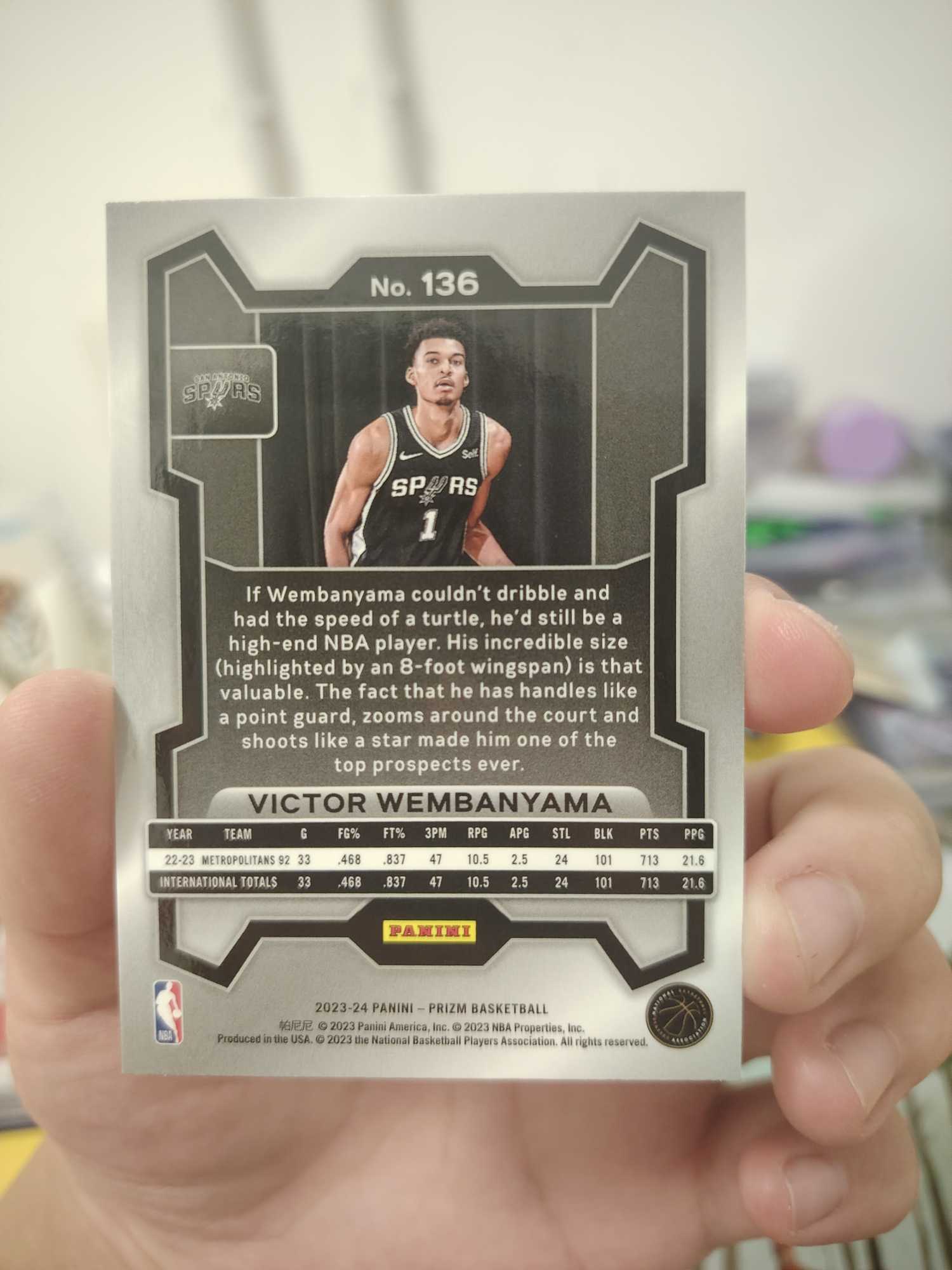 2023-24 Panini Prizm Victor Wembanyama RC prizm系列维克托文班亚马新秀base