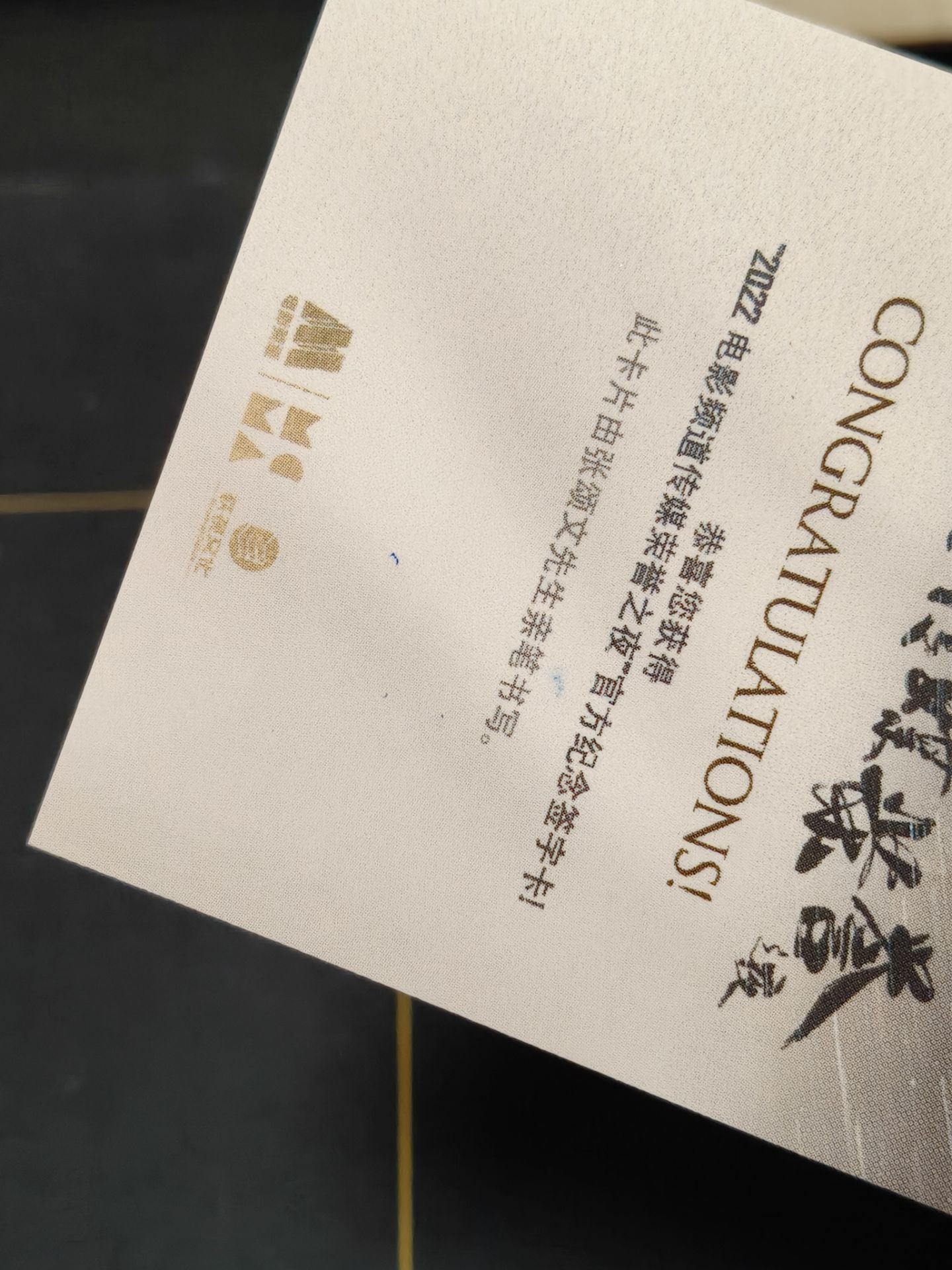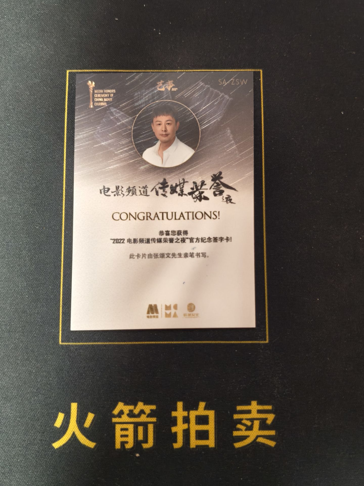 【火箭拍卖 截标预付82%】2022 轶视文化 电影频道 传媒荣誉之夜 荣誉嘉宾 张颂文 签字 卡签 专收必备 瑕疵看图「梅脆」1019G01兿