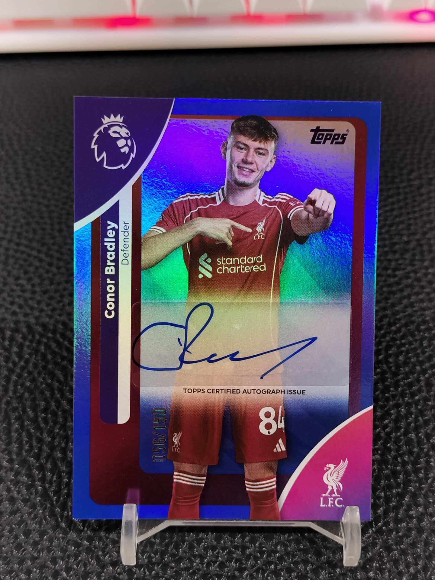 【浩行拍卖 截标预付82%】2025 topps premier league conor bradley 英超 新赛季 利物浦 康纳 布拉德利 签字 蓝折 折射 56/150编 专收必备 瑕疵看图「题倡」1019h01飛