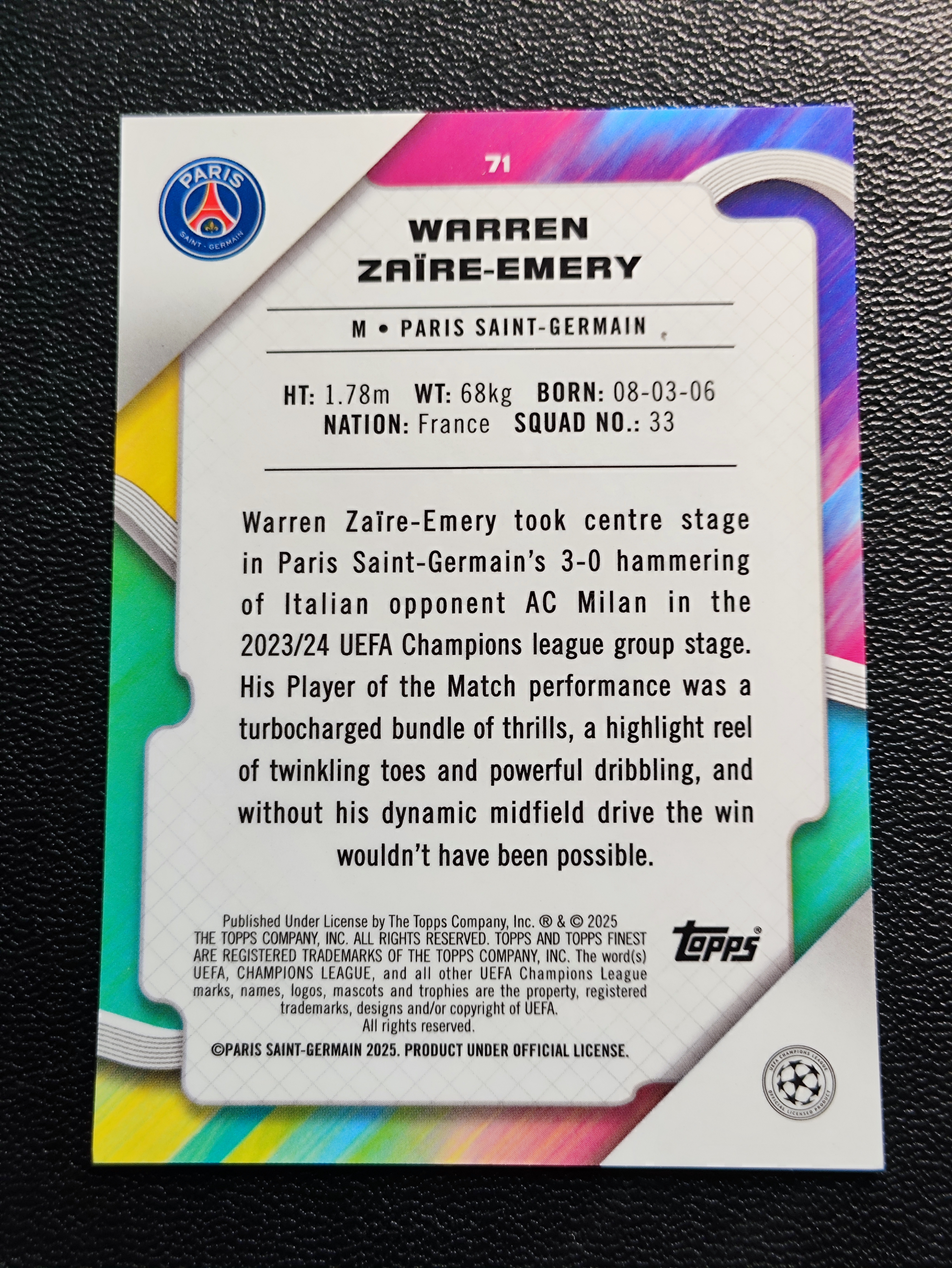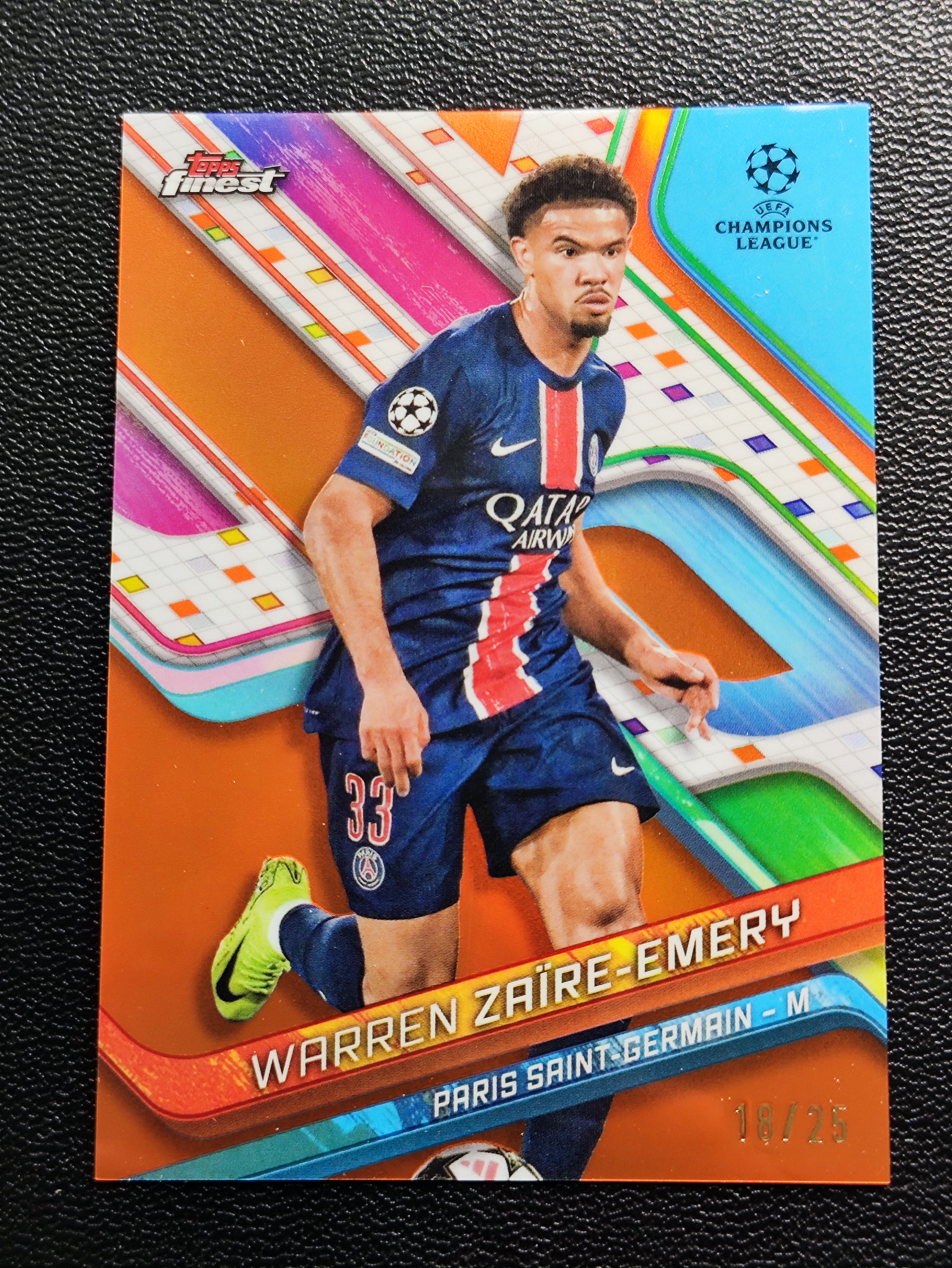 2025 Topps Finest Warren Zaïre-Emery 欧战Topps 巴黎圣日耳曼 沃伦 扎伊尔 埃梅里 橙折 18/25编 超低编 杜埃 登贝莱 巴尔科拉 若昂内维斯 k77队友