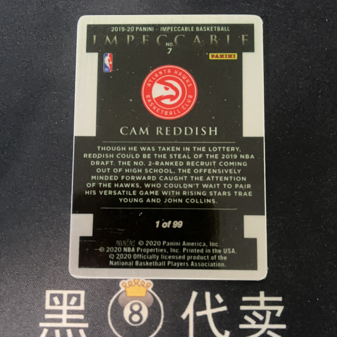 96【黑8代卖】2019-20 Panini Impeccable 小真金 Cam Reddish 卡姆 雷迪什 RC 新秀 铁板 特卡 01/99编 首编 卡品如图【清风无尘-2】