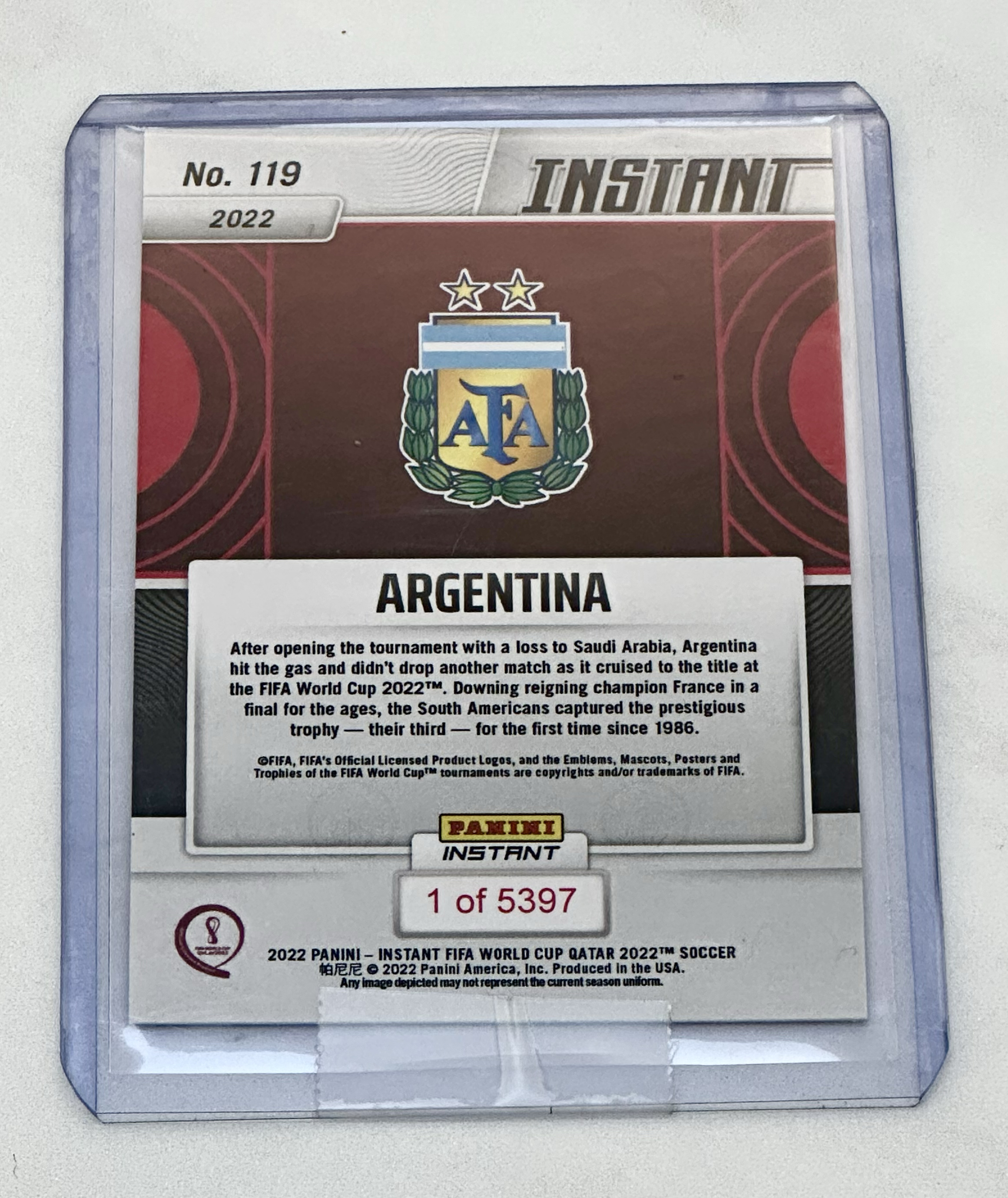 2022 panini instant阿根廷夺冠时刻 原封夹 世界杯时刻迪玛利亚 梅西 大马丁 恩佐 麦卡利斯特 迪巴拉 等阿根廷夺冠 限量5397张
