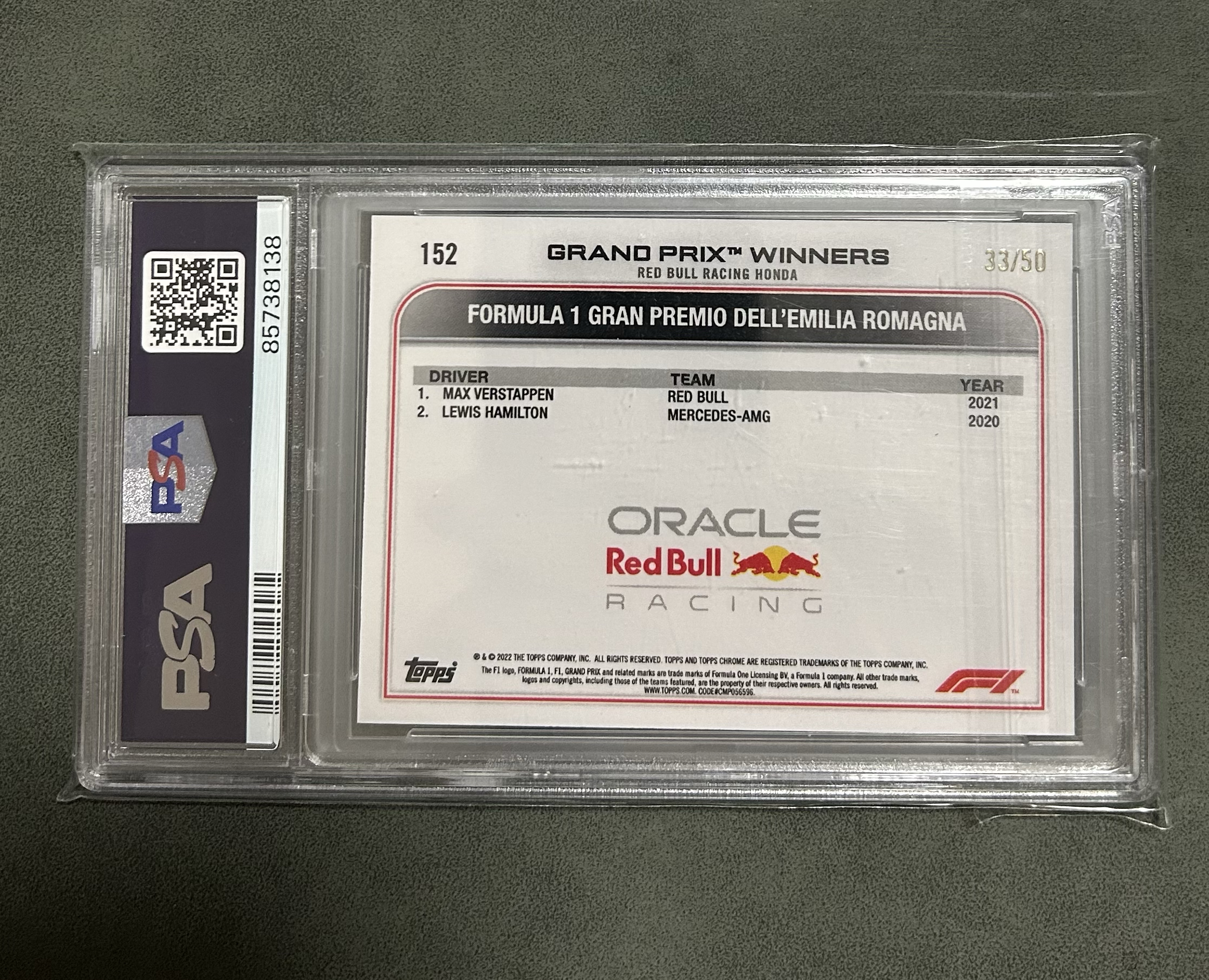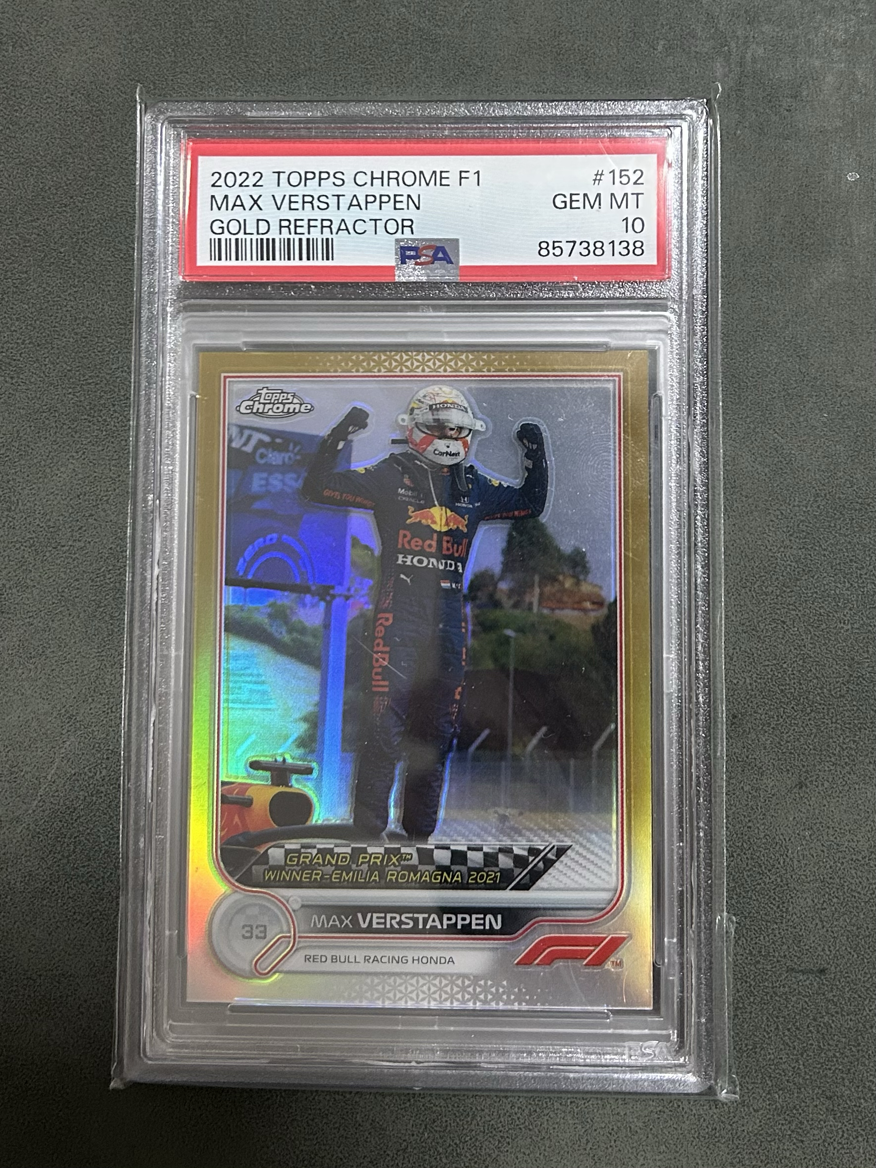 2022 Topps Chrome Max Verstappen 马克斯 维斯塔潘 四届F1年度车手总冠军 红牛车队 金折 33/50编 同背! PSA10分 汽车人 围场最佳车手 收藏必备