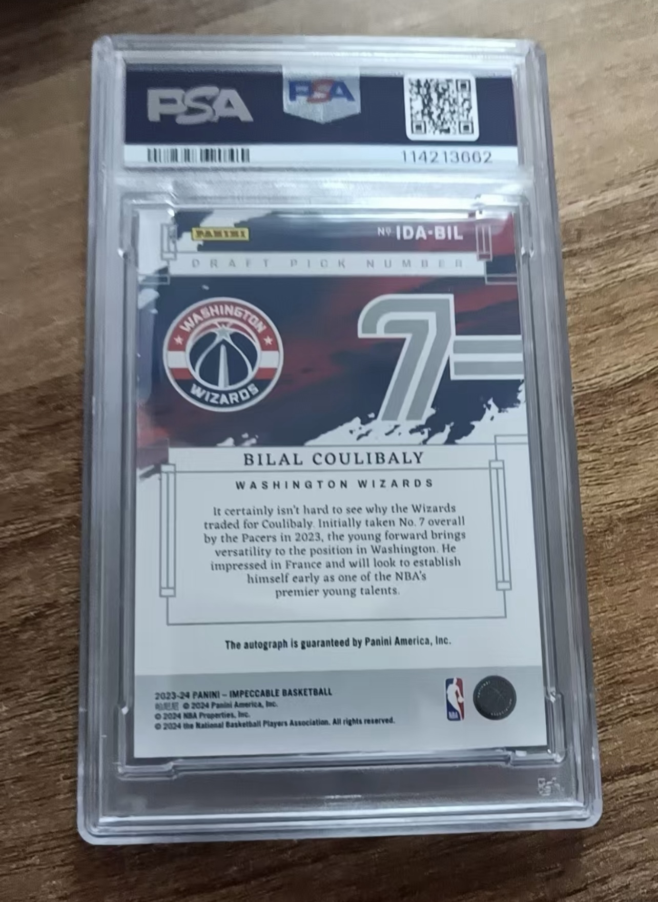 2023-24 Panini Impeccable Bilal Coulibaly RC 比拉尔 库利巴利 奇才 新秀 rc 数据顺位签字 数据签 3/7 签字psa9 hit卡 萨尔队友 被鸽重拍