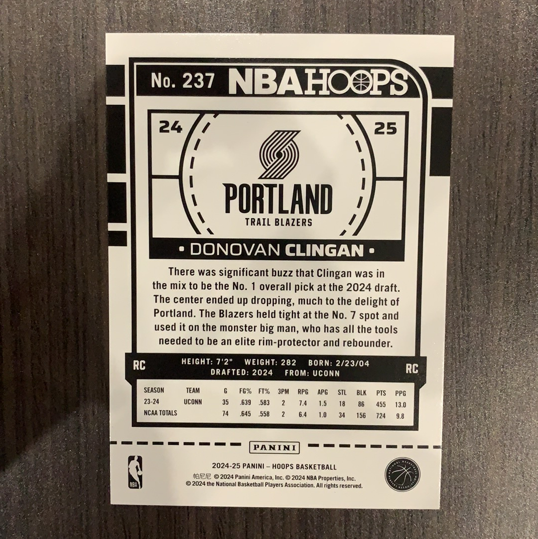 2024-25 Panini NBA Hoops Donovan Clingan RC Hoops 多诺万 克林根 绿折 99编 开拓者