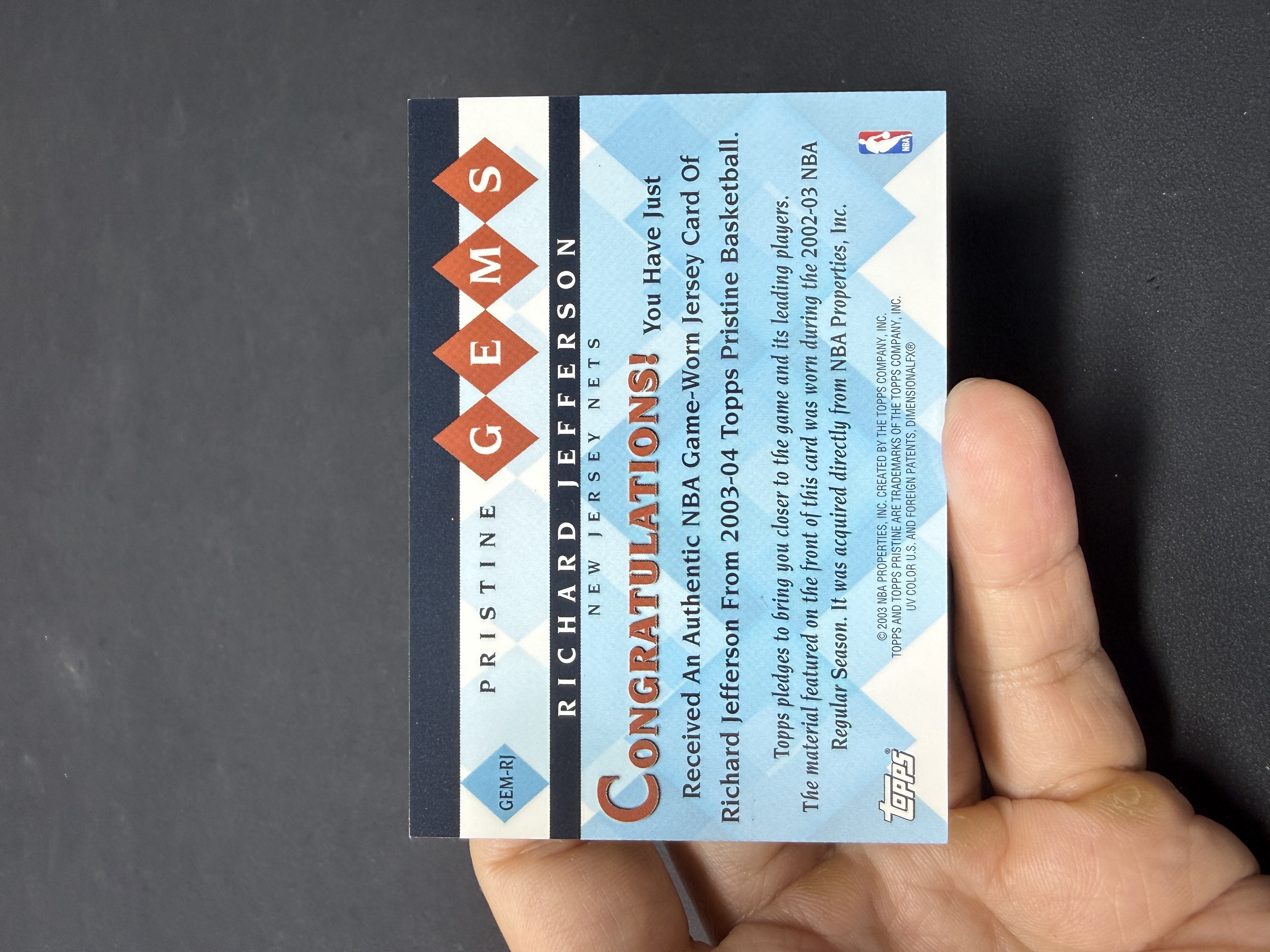 2003 Topps NBA Richard Jefferson PRISTINE GAMES 理查德 杰弗森 物料 亲穿 球衣 老特 特卡 自己抽出 感受20多年前的经典 卡品如图 407