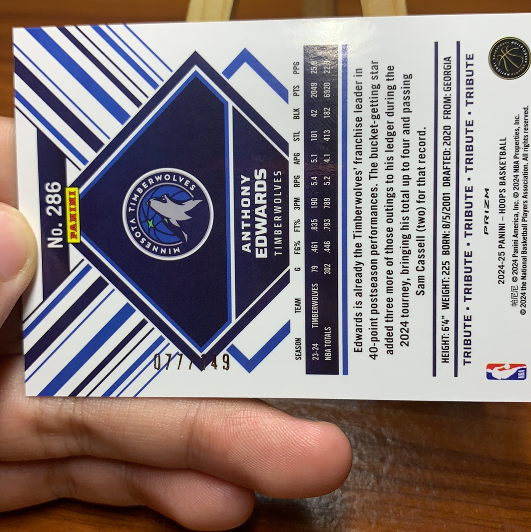 2024-25 Panini NBA Hoops Anthony Edwards 可积累 免费代卖 粤G球星卡 149编 森林狼 爱德华兹 华子 hoops 荧光绿折 核心 卡品如图 打包 (代)