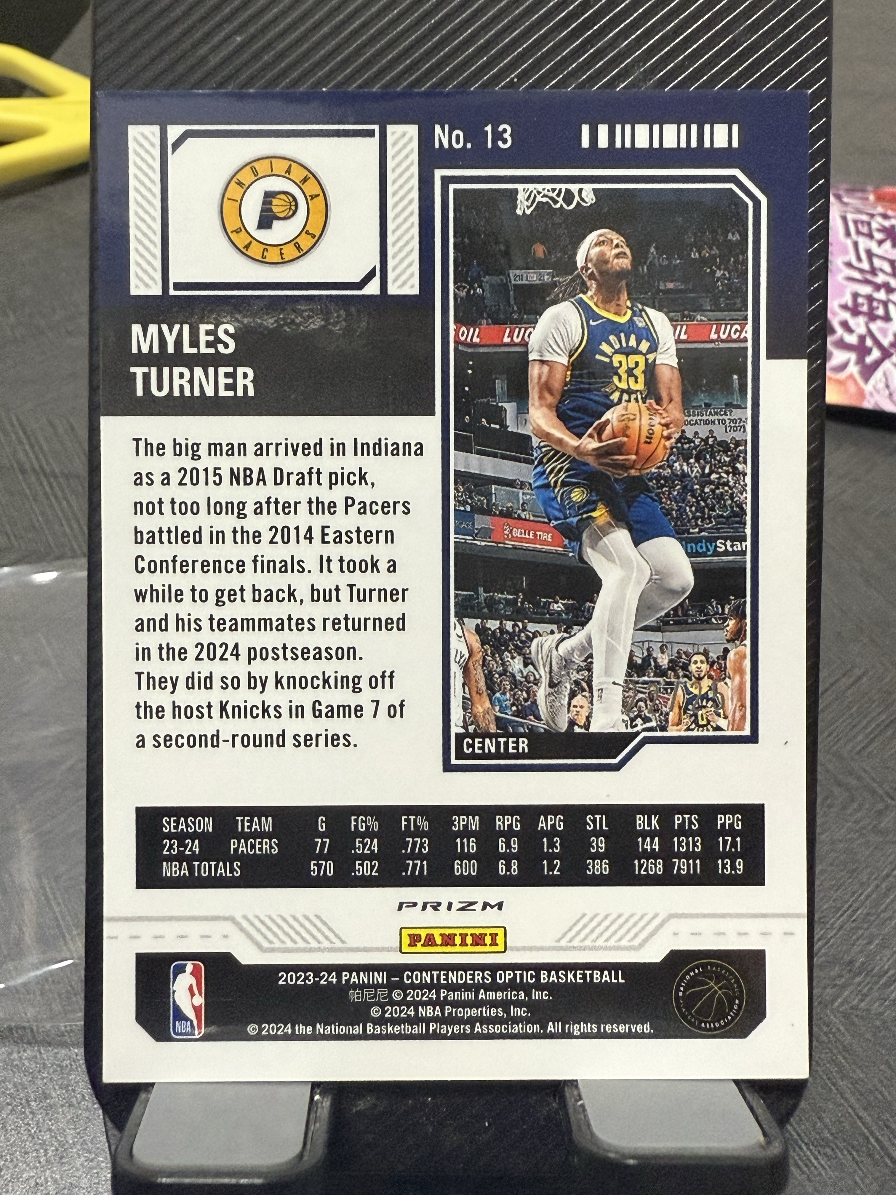 2023-24 Panini Contenders Optic Myles Turner 迈尔斯 特纳 球票OP 步行者 黑白折 25编 卡品如图