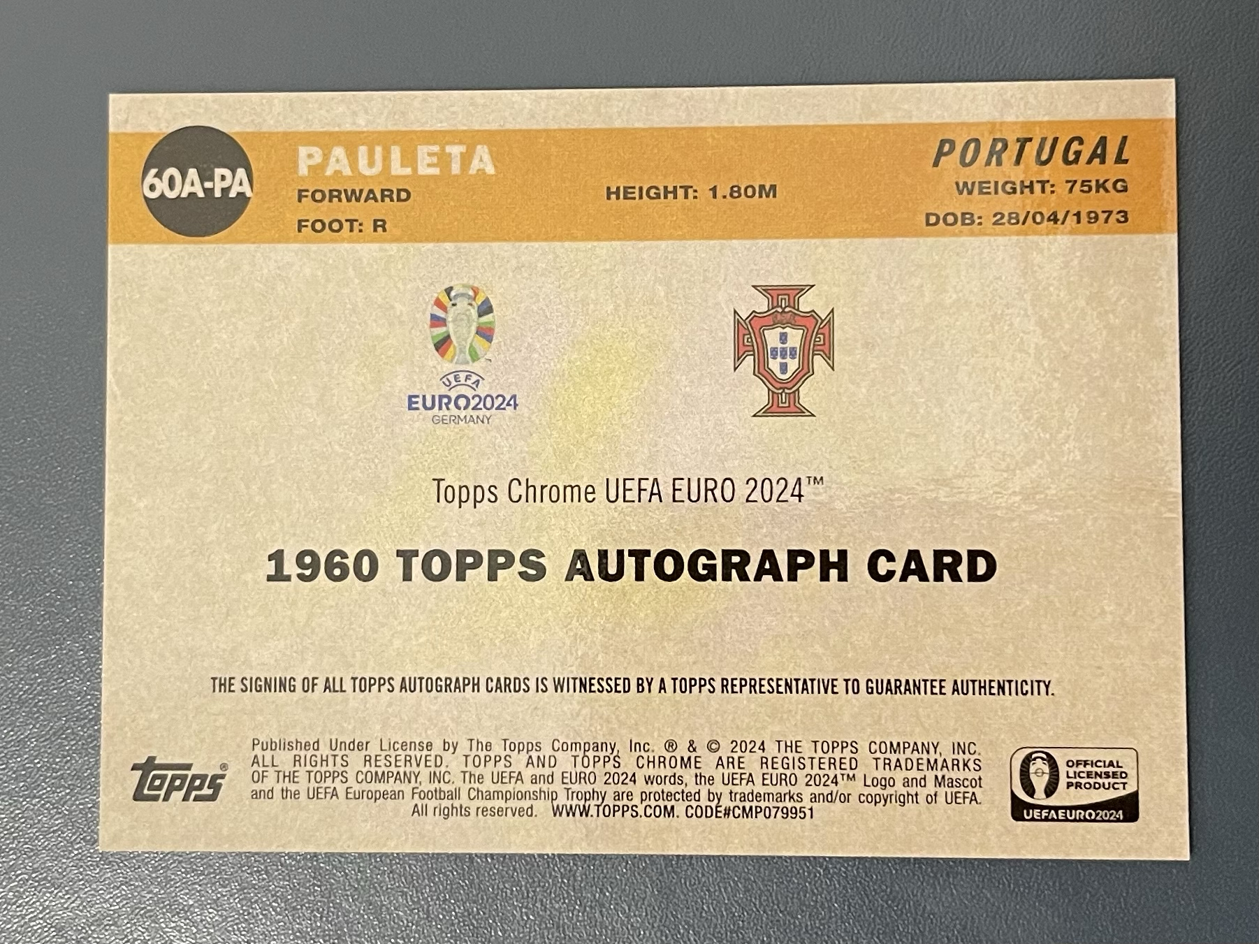 2024 Topps Chrome Pauleta 欧洲杯 TC 葡萄牙 保莱塔 签字 1960复古签 87/99编 银折 C罗队友 折射 卡品如图 值得收藏