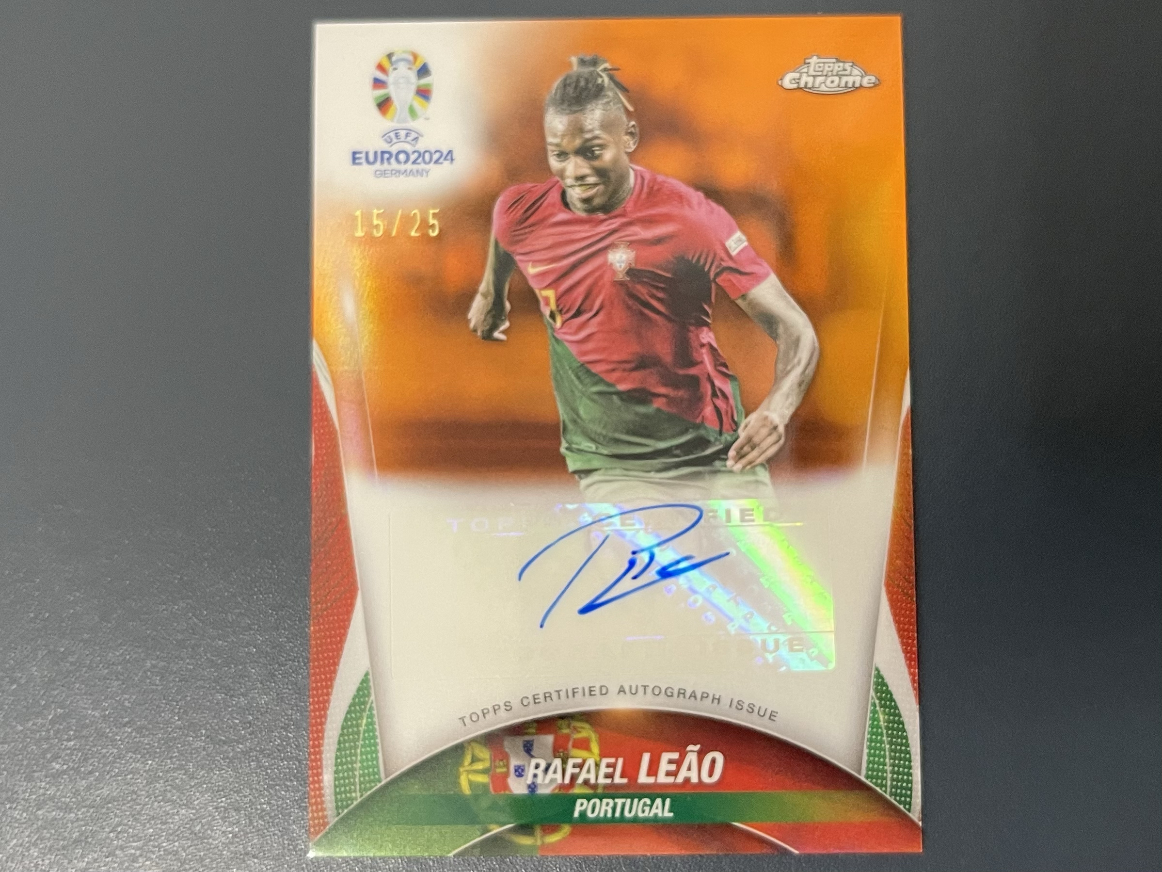 2023-24 Topps Chrome UEFA Euro Rafael Leao 欧洲杯 TC 拉斐尔 莱昂 15/25编 橙折 签字 葡萄牙 C罗 队友 收藏投资 卡品如图