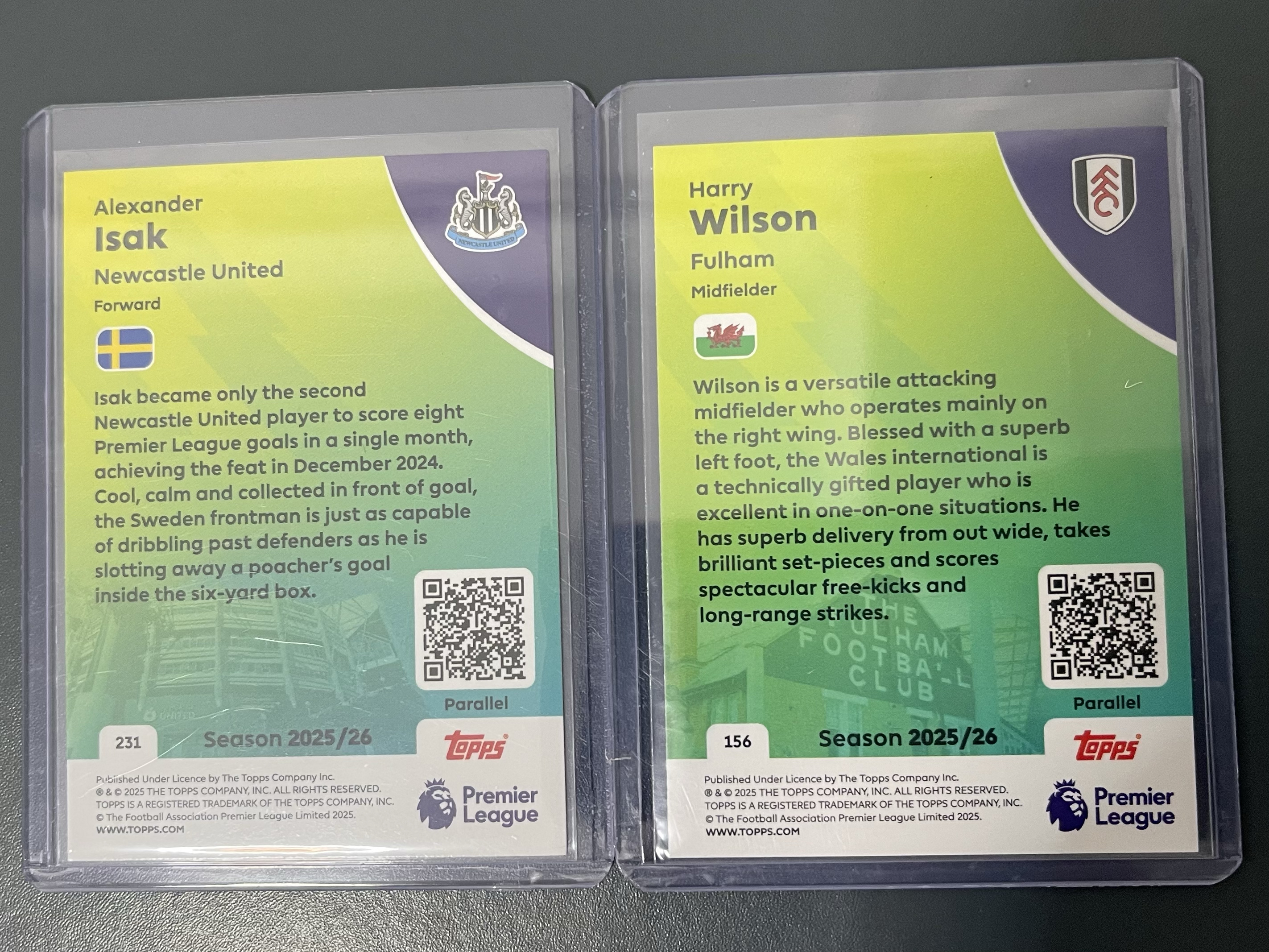 2025-26 Topps Premier League 英超 亚历山大 伊萨克 哈里 威尔逊 299编 399编 富勒姆 纽卡斯尔 卡品如图 不保卡品 值得收藏