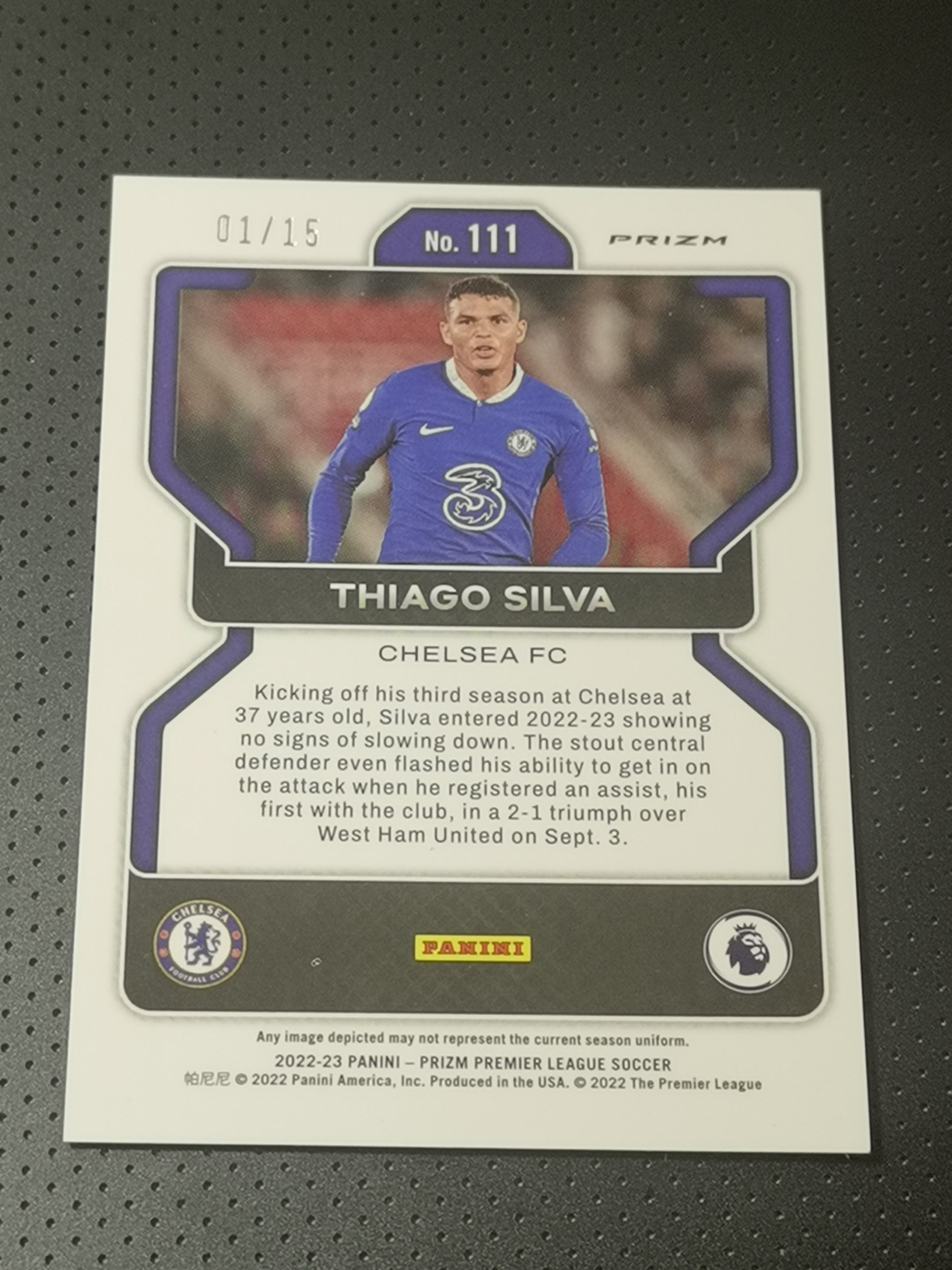 2022-23 Panini Prizm Thiago Silva 英超 PZ 切尔西 蒂亚戈 席尔瓦 01/15 首编 橙折 AC米兰 巴黎圣日耳曼 巴西🇧🇷 BRAZIL