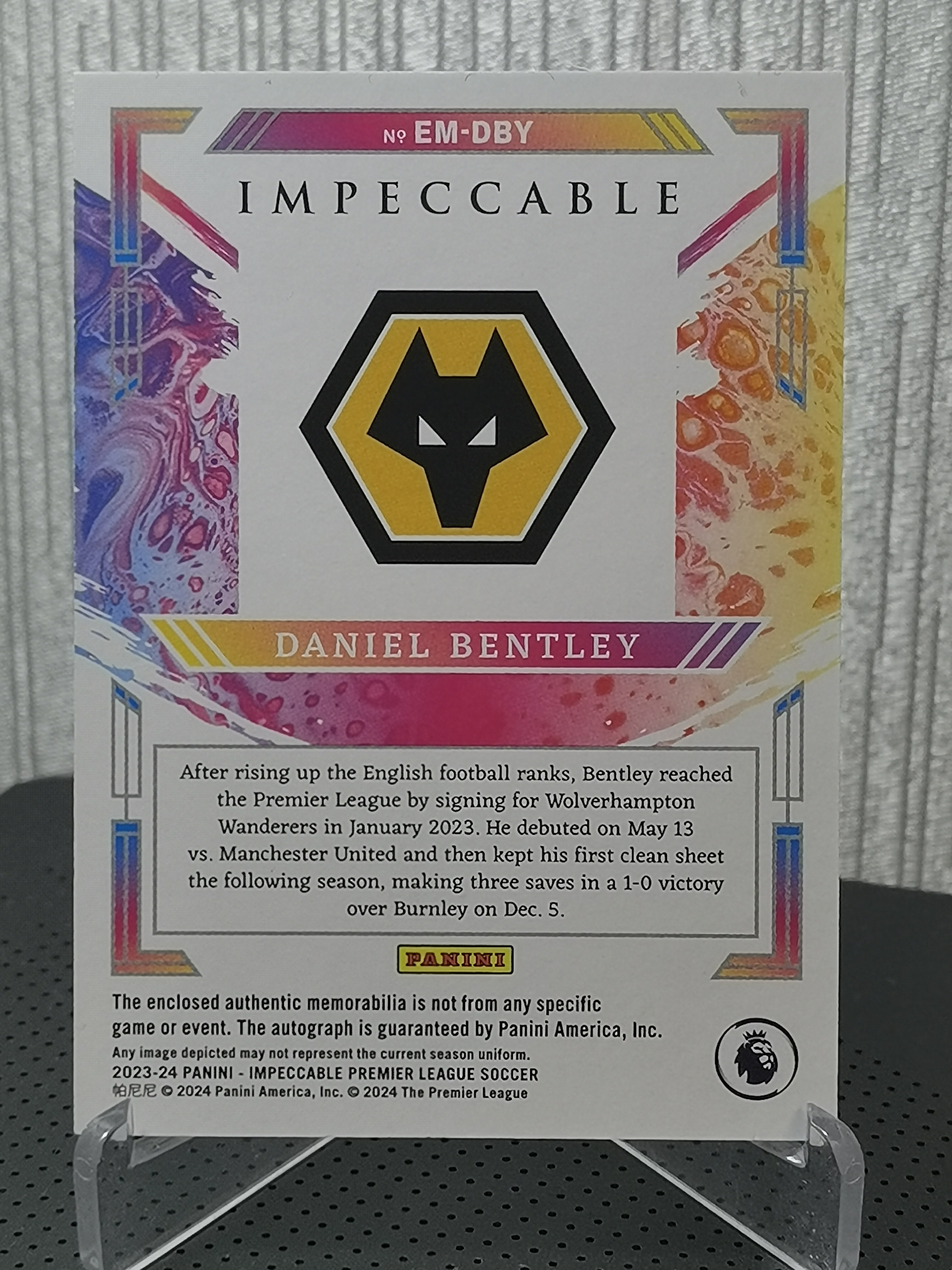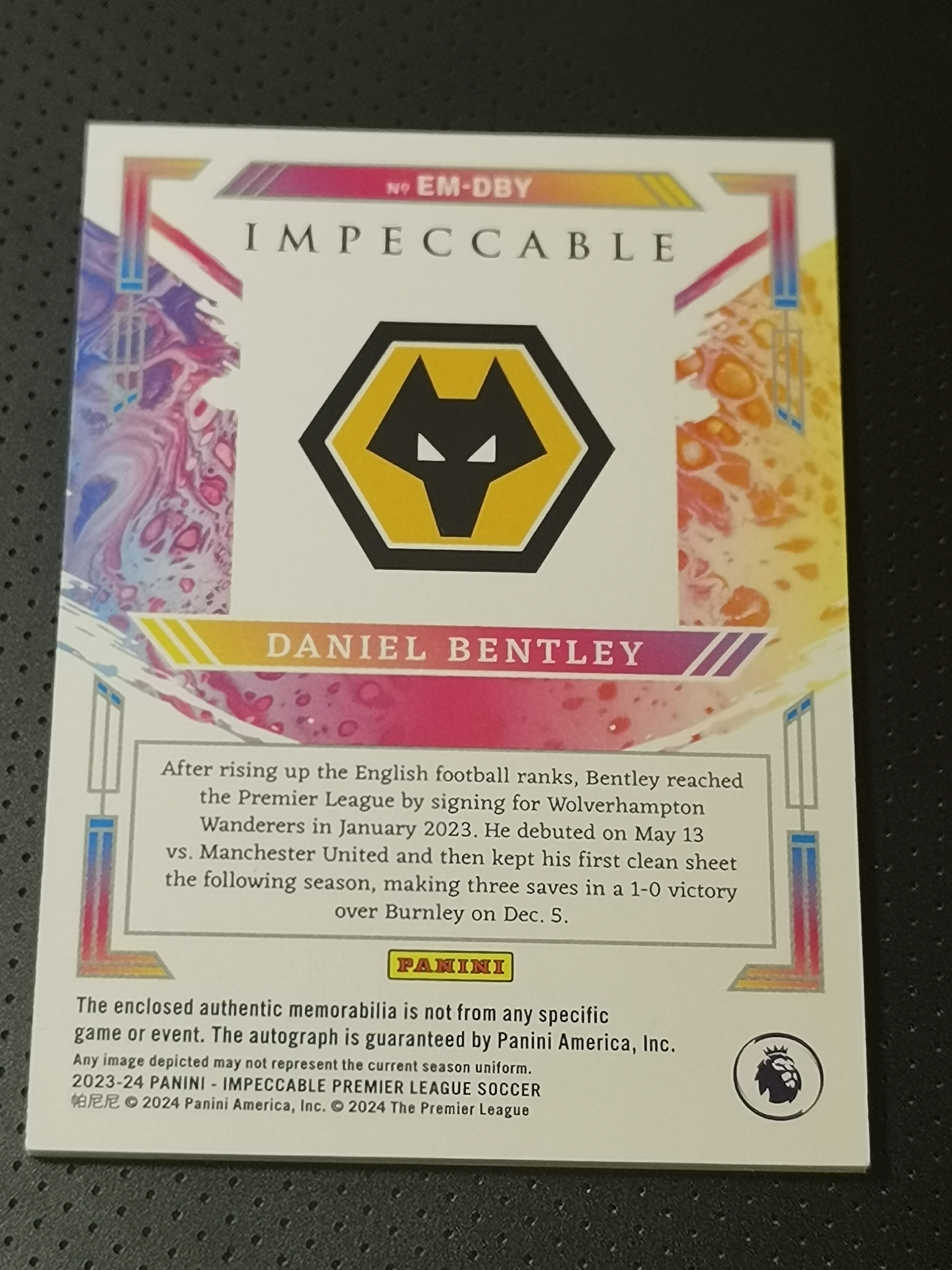 2023-24 Panini Impeccable Daniel Bentley 英超小真金 丹尼尔-本特利 21/25编 低编 物料签 签字 新秀 狼队 英格兰 ENGLAND RC
