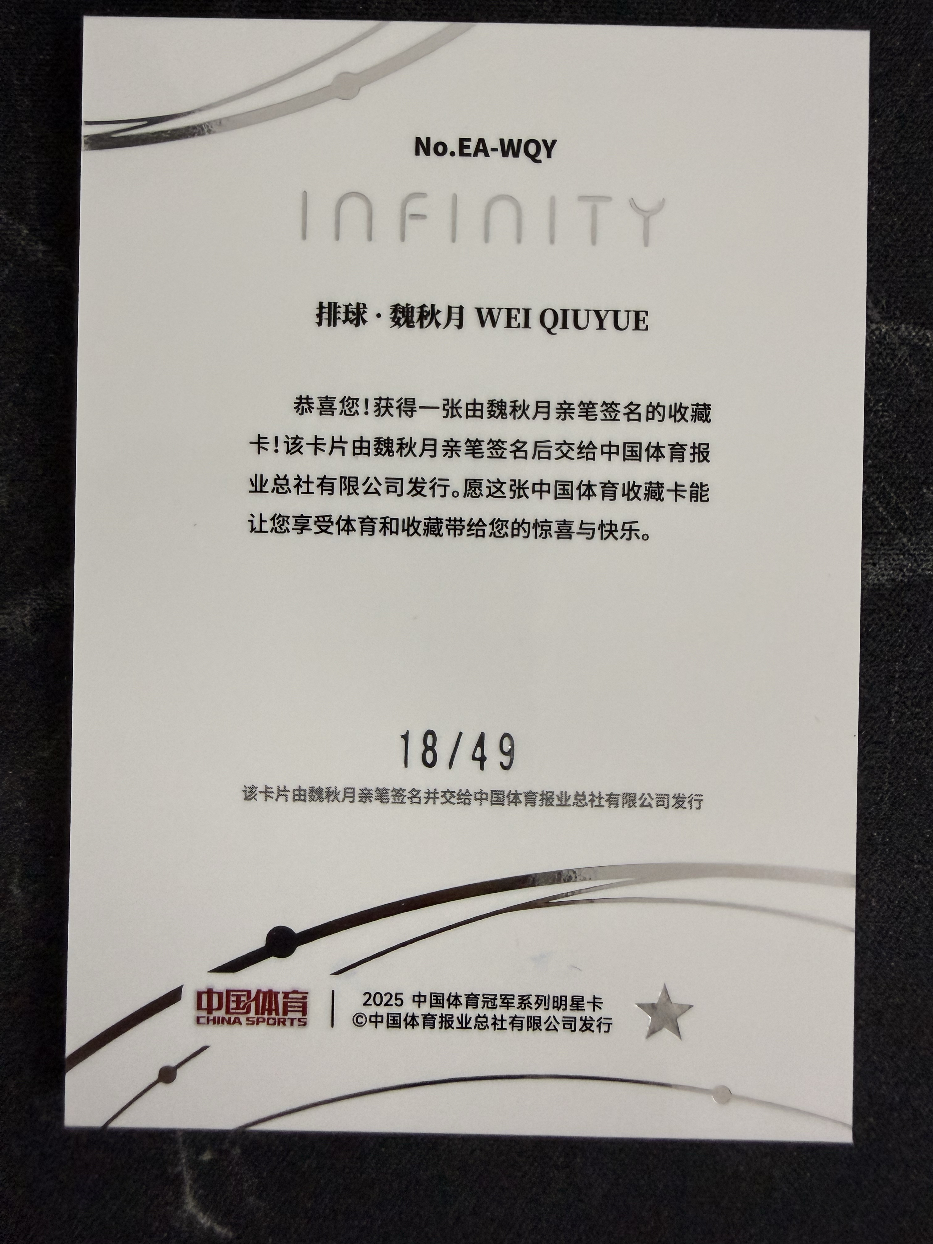 2025 中国体育 中国体育 无限 魏秋月 49编 签字 中国女排 队长 世界冠军 收藏必备 卡品通行 【宝哥】