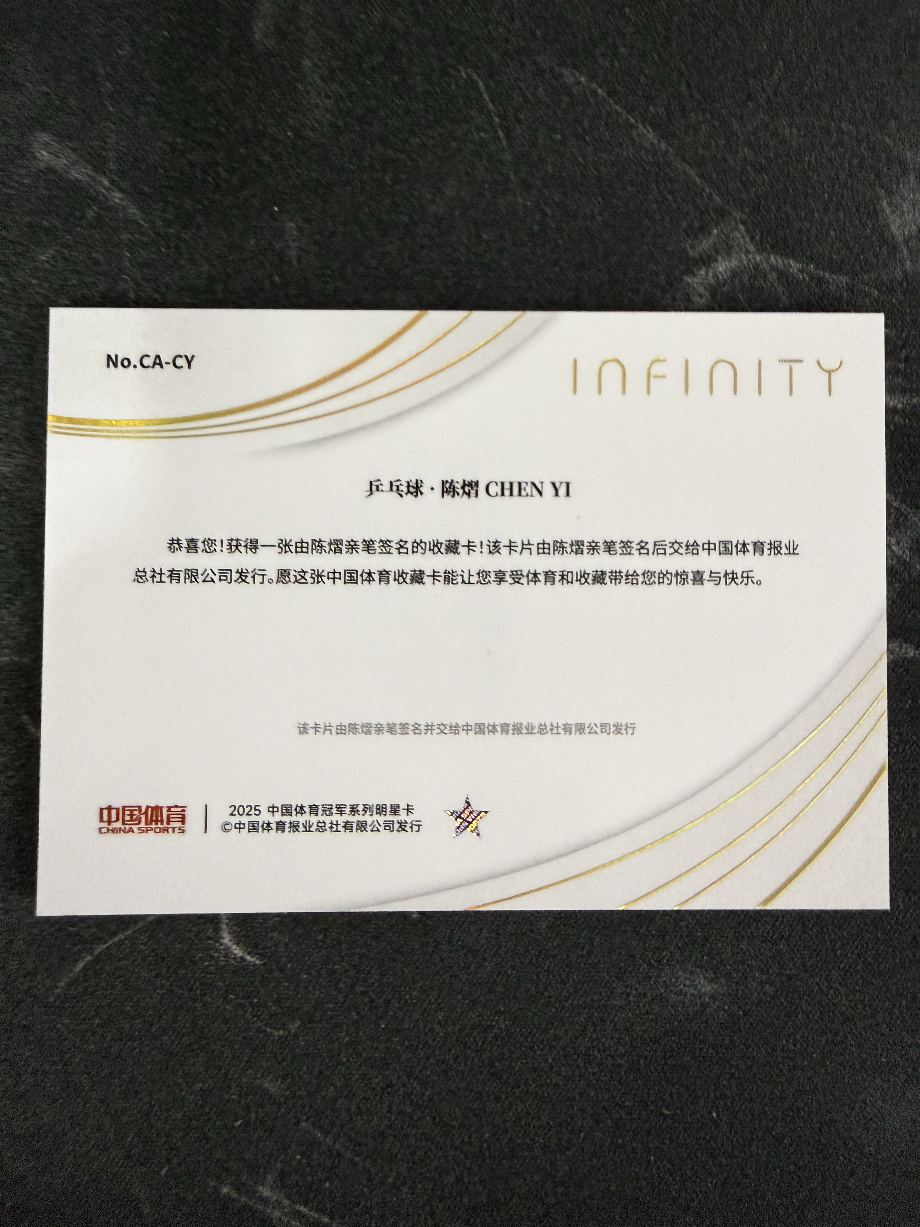 2025 中国体育 中国体育 无限 陈熠 10编 签字 首编 乒乓球 新秀 投资必备 收藏必备 卡品通行 【宝哥】