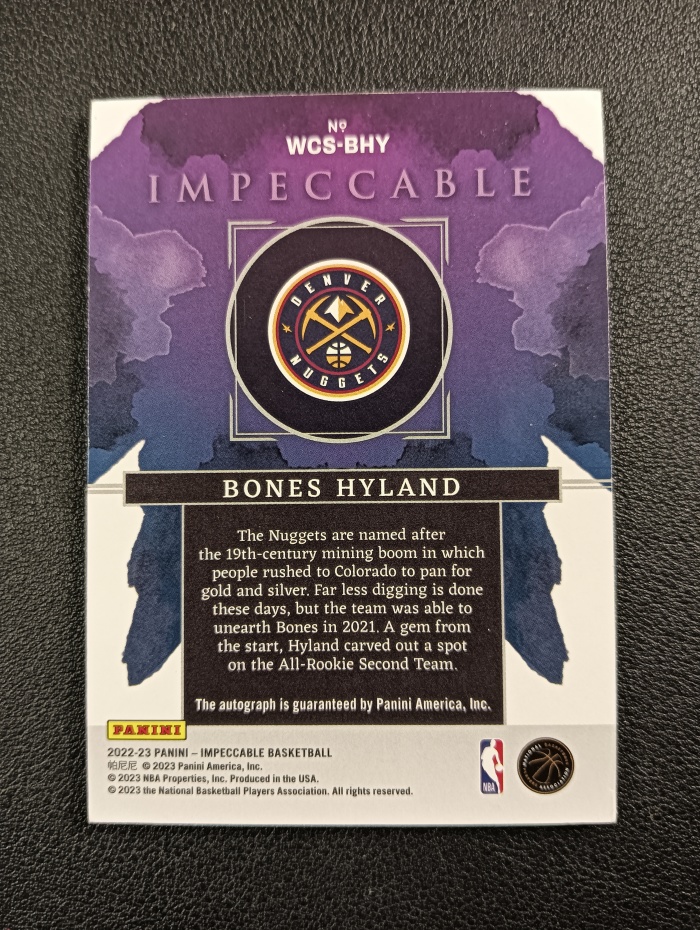 2022-23 PANINI 小真金 BONES HYLAND 【卡仓-冰冰077】掘金 纳肖恩海兰德 骨头 银版 WATERCOLOR 水彩签字 卡签 /99 NO.WCS-BHY