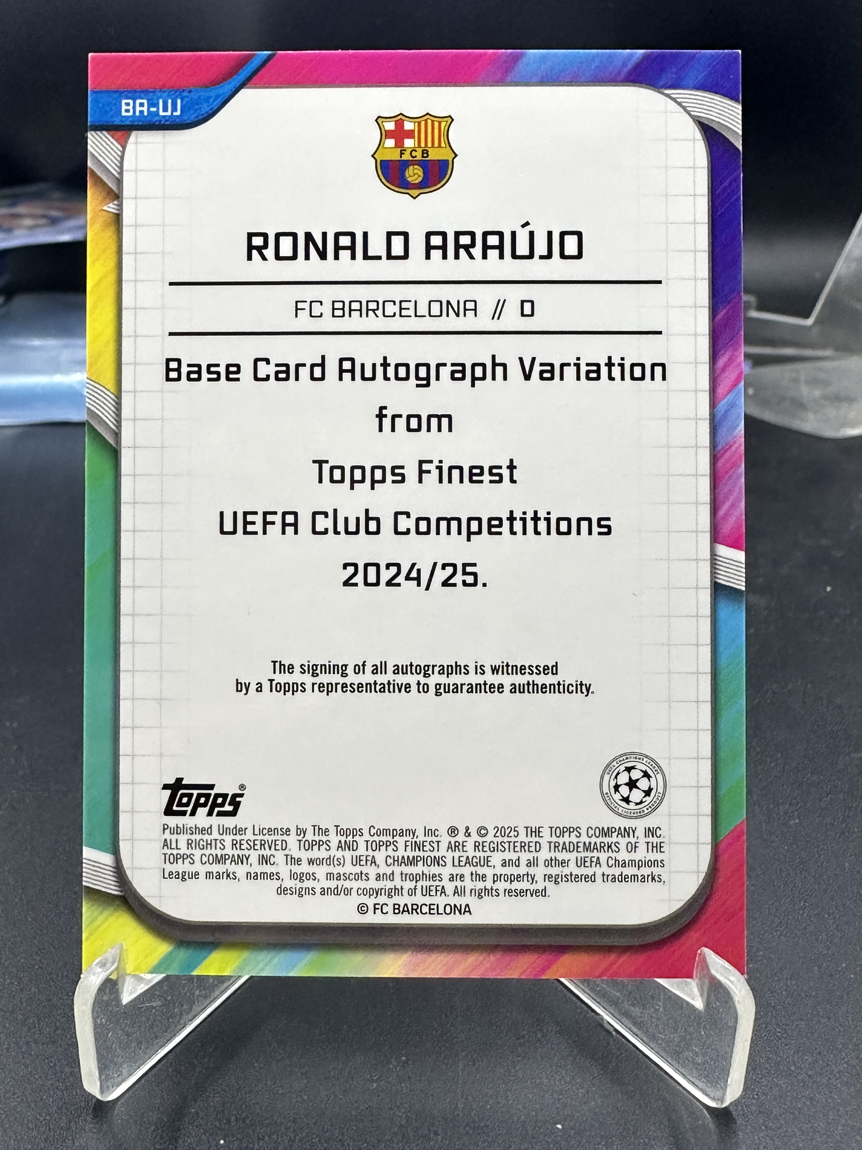 2025 Topps Finest Ronalo Araujo 啊劳霍 巴萨 75编 粉折 签字 欧冠 实卡精美 卡品如图 #龙